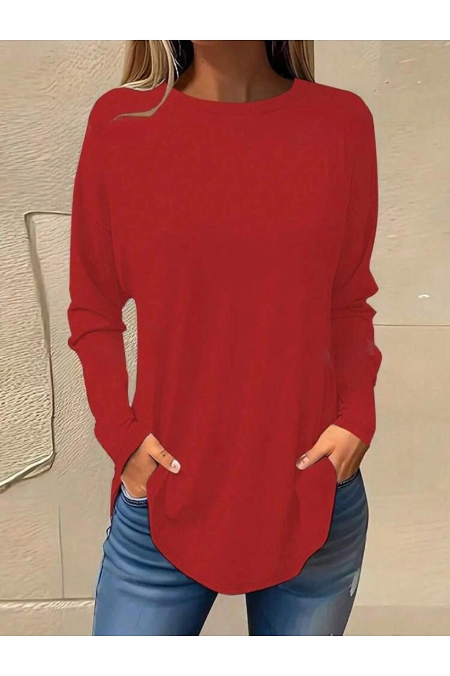 Kadın Uzun Kollu Yuvarlak Yaka Salaş Iki Iplik Bluz