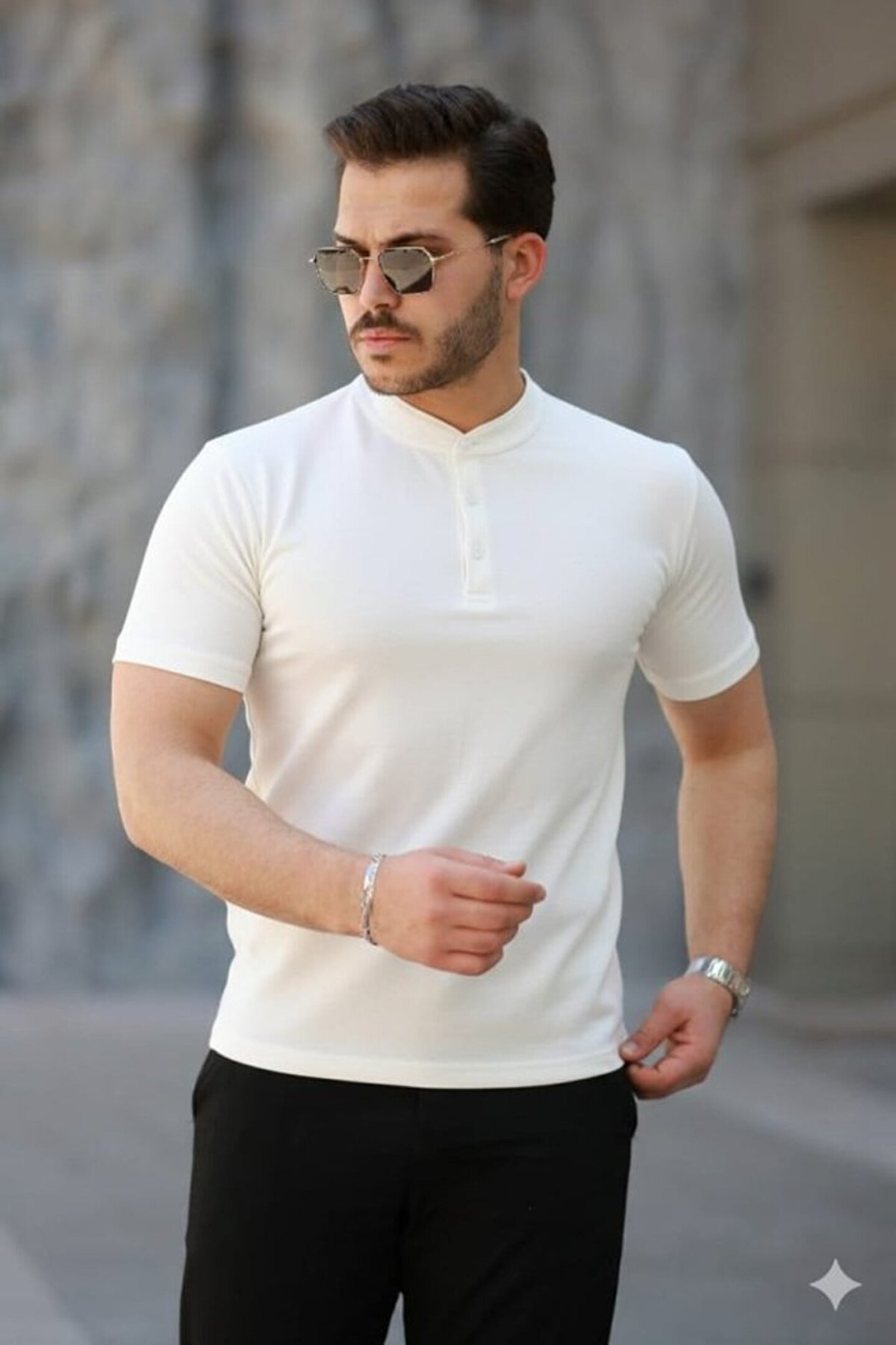 Erkek Kısa Kollu Hakim Yaka önü Düğmeli Viskon Tişört
