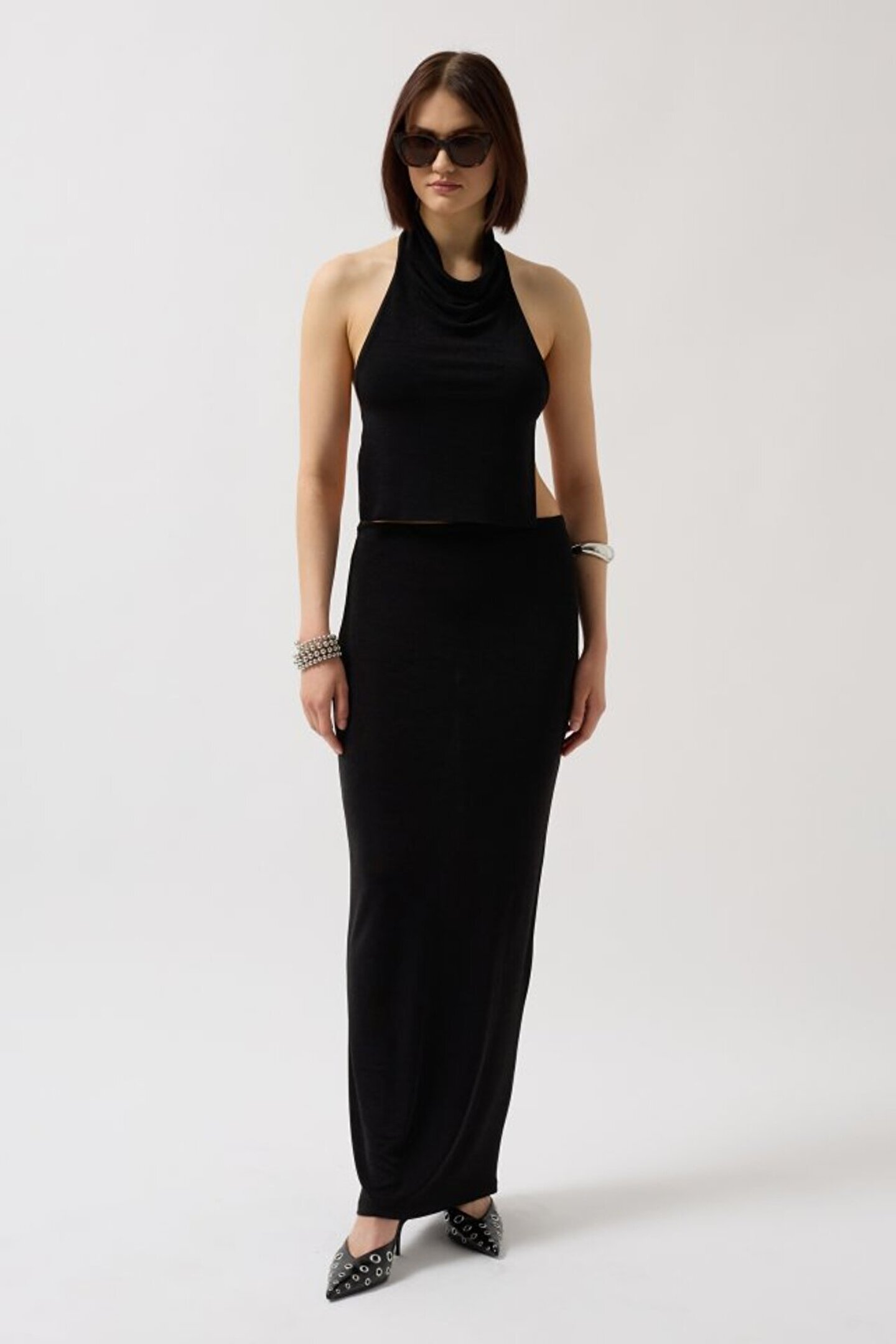 etol textile Parlak Kumaş Maxi Etek
