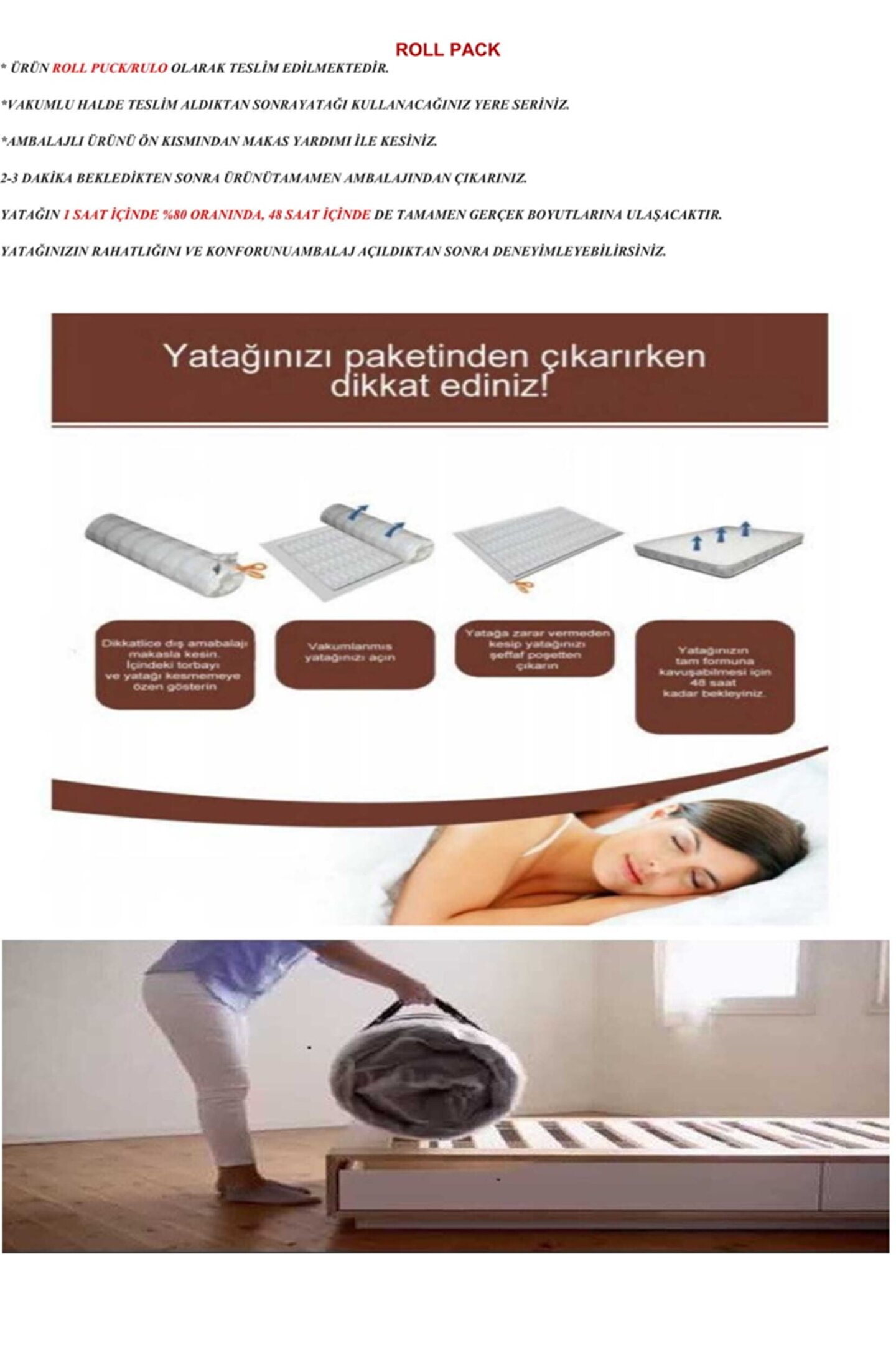 Ortopedik sünger yatak üretimden tüketiciye satış yapmaktayız . Özel ölçü siparişleriniz için mağazaya soru sor kısmından iletişime geçebilirsiniz!!! Yataklarımızda; ¤ önemli: Kesinlikle jakar(polyester) kumaş kullanılmamaktadır!!!! ¤ antibakteriyel, antialerjik 300 gr/m2 elyaf ve 180 gr/m2 örme(havlu) kumaş kullanılmaktadır. ¤ koku yapmaz ,terletmez 50 dansite (istakbal ürünü) granür sünger kullanılmıştır. ¤ etrafının kapanmasında çift yönlü 42 mm fitil kullanılmaktadır çift taraflı kullanım avantajı *çift taraflı kullanım yapısı sayesinde uzun yıllarca konforlu kullanım avantajı sağlarken sünger ile birleşerek oluşturduğu katmanla omuzlarımıza destek sağlar. Paketleme roll pack * ürün roll puck/rulo yatak olarak teslim edilir. *vakumlu halde teslim aldıktan sonrayatağı kullanacağınız yere seriniz. Ambalajlı ürünü ön kısmından makasyardımı ile kesiniz. 2-3 dakika bekledikten sonra ürünütamamen ambalajından çıkarınız. Yatağın 1 saat içinde %80 oranında, 48saat içinde de tamamen gerçek boyutlarına ulaşacaktır. Yatağınızın rahatlığını ve konforunuambalaj açıldıktan sonra deneyimleyebilirsiniz. Roll pack *ürünlerimiz güvenli biçimde gönderilmektedir .