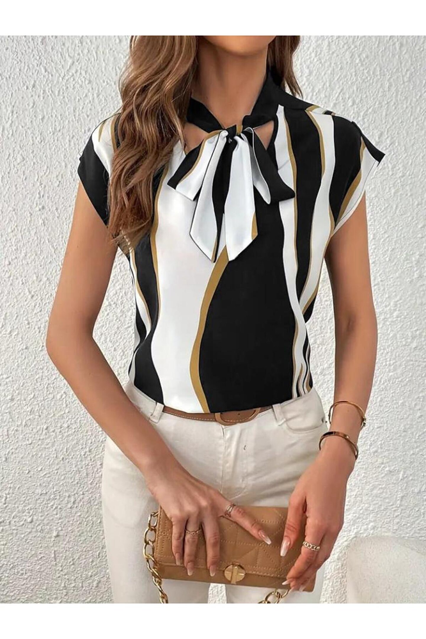 EyesOf Kadın Kısa Kollu Boyundan Bağlamalı Desenli Dokuma Bluz