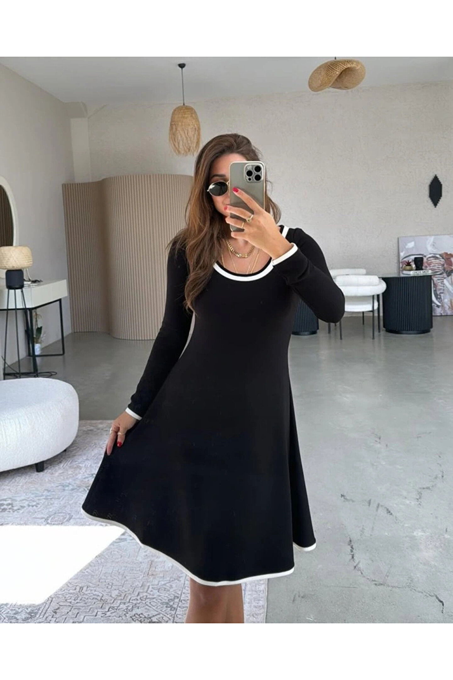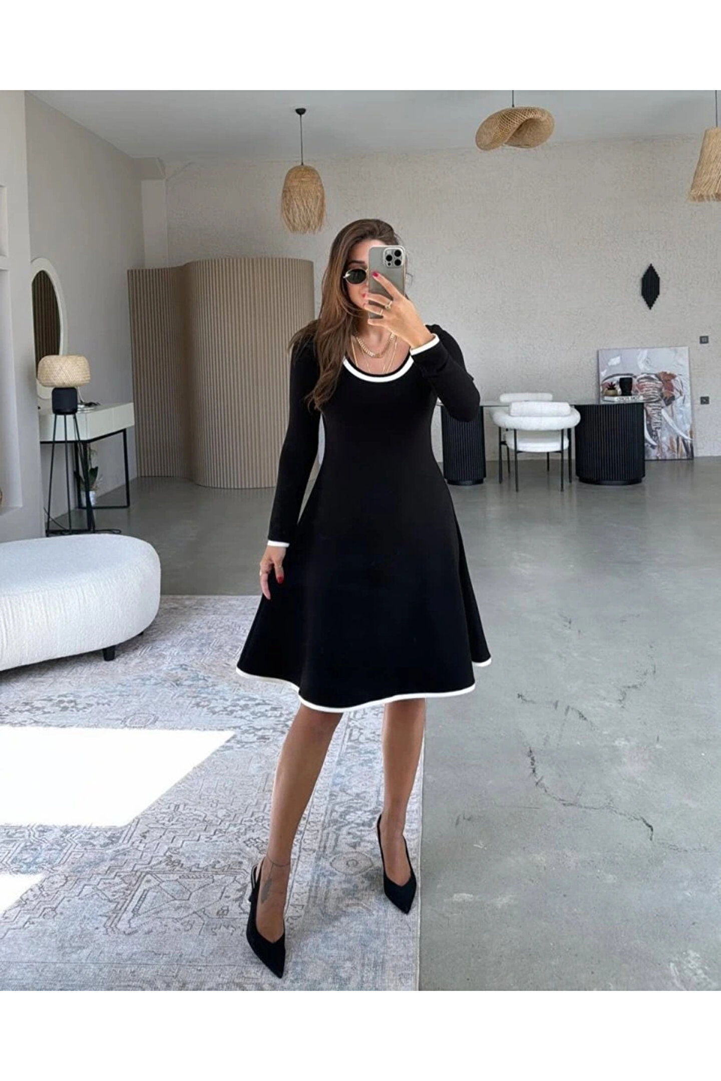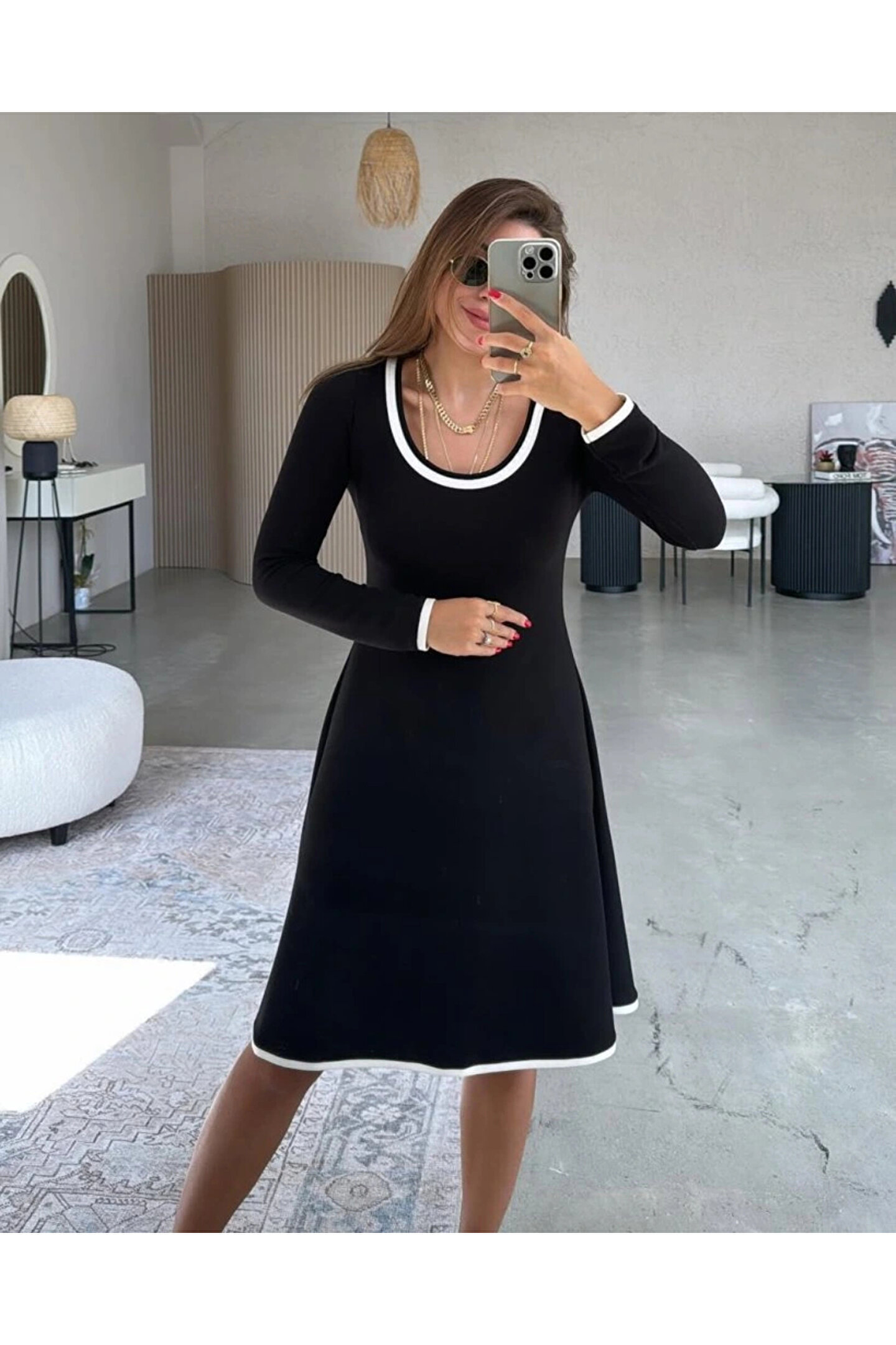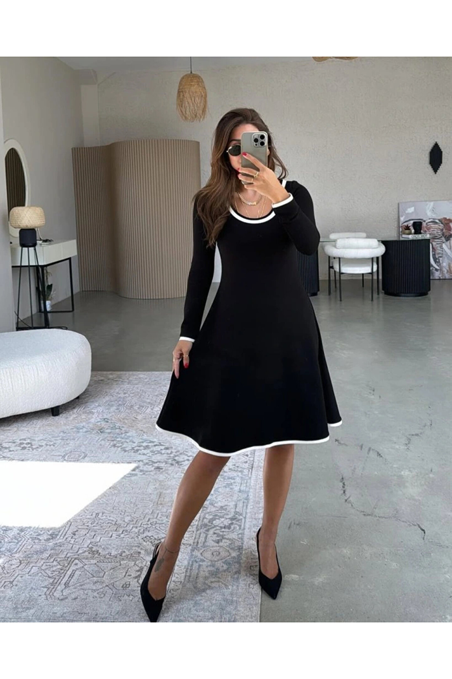 EyesOf Kadın Uzun Kollu Yuvarlak Yaka Midi Viskon Iki Iplik Elbise
