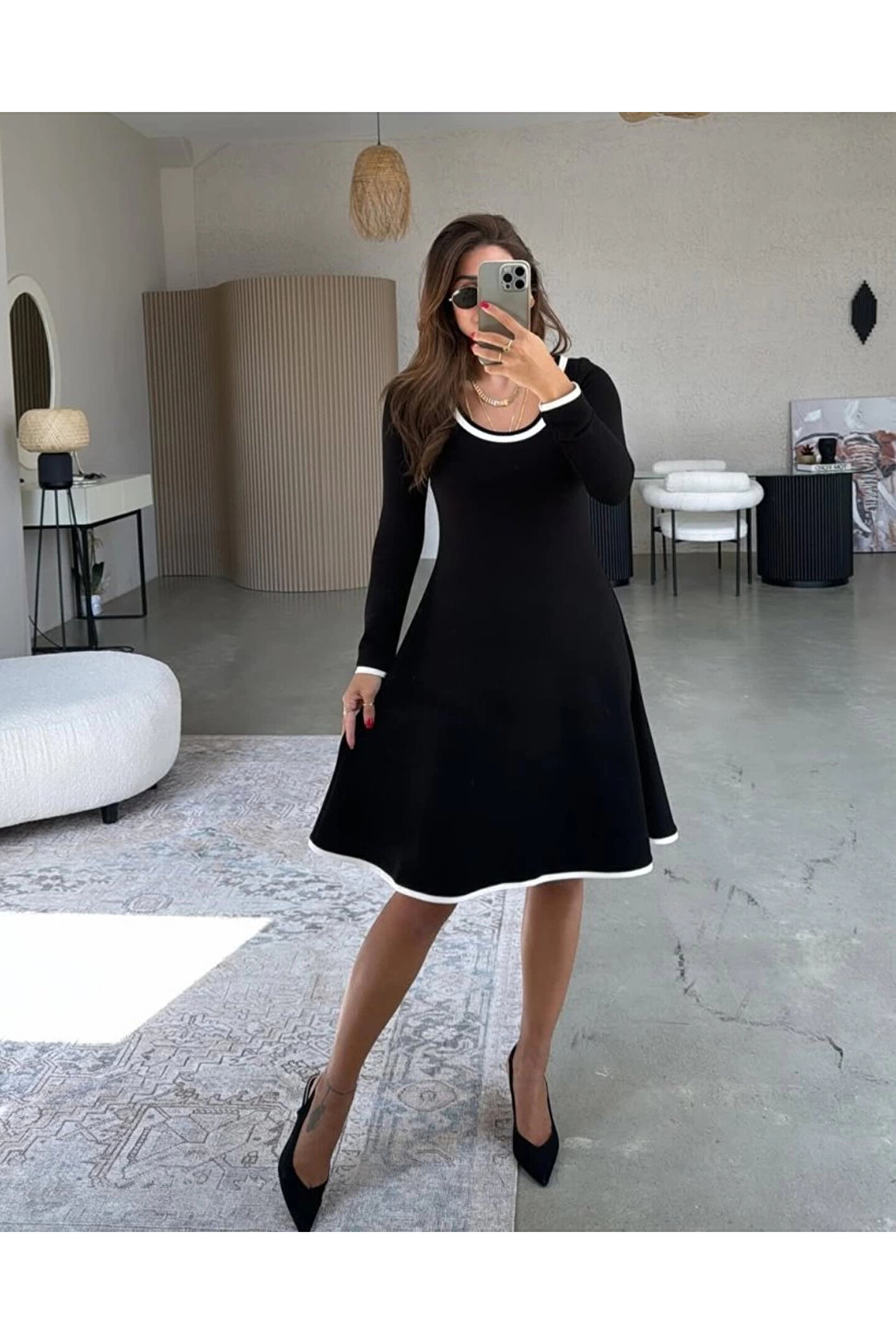 Kadın Uzun Kollu Yuvarlak Yaka Midi Viskon Iki Iplik Elbise