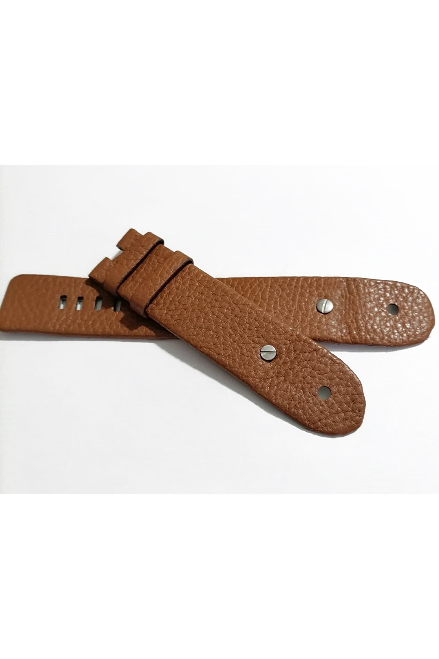 Dizel Uyumlu vidalı Saat Kordonu Hakiki Deri 24 mm Taba