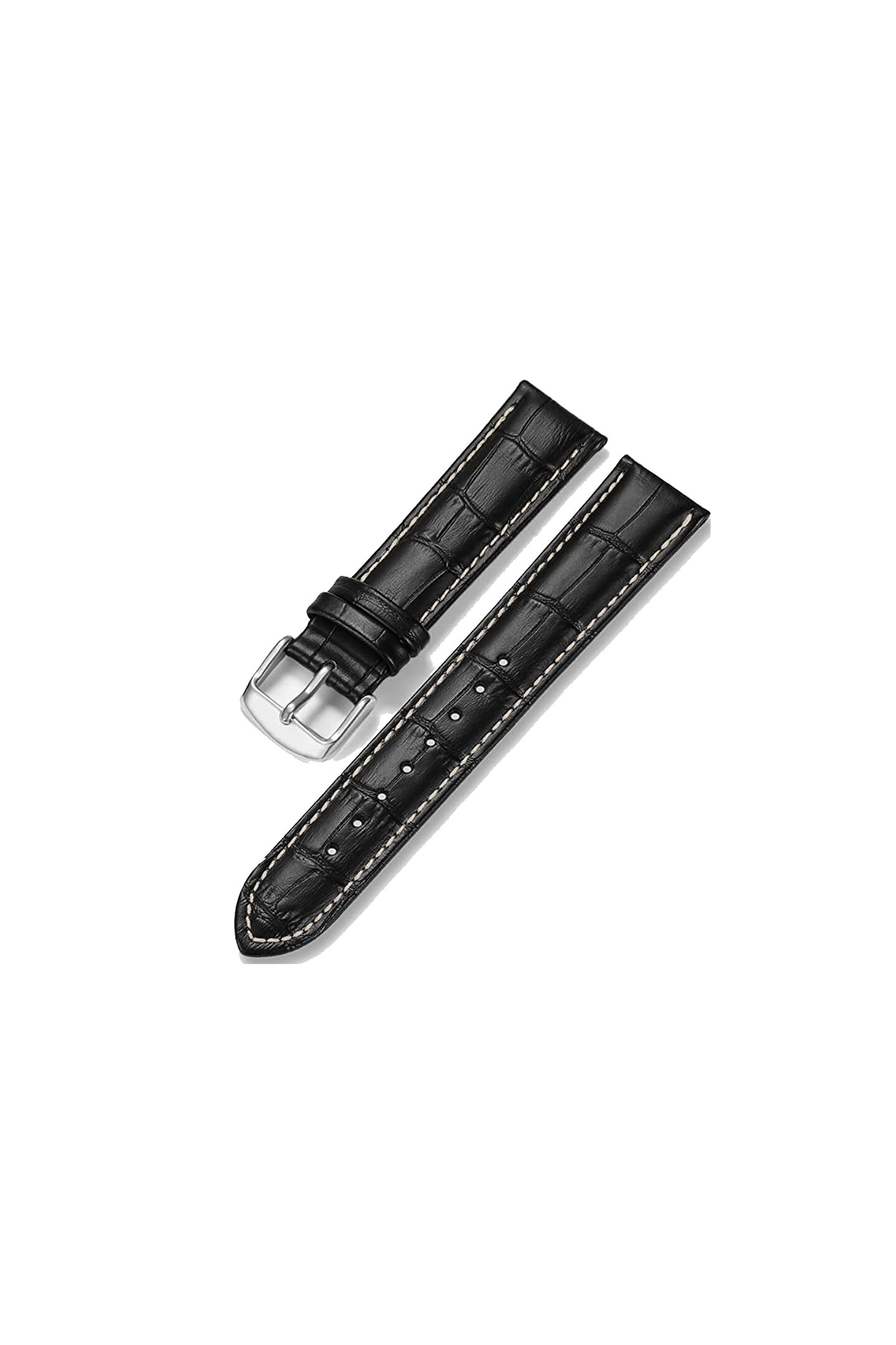 FADO & Her Saate Uyumlu Hakiki Siyah Deri Saat Kordonu 22 mm (294) beyaz dikişli