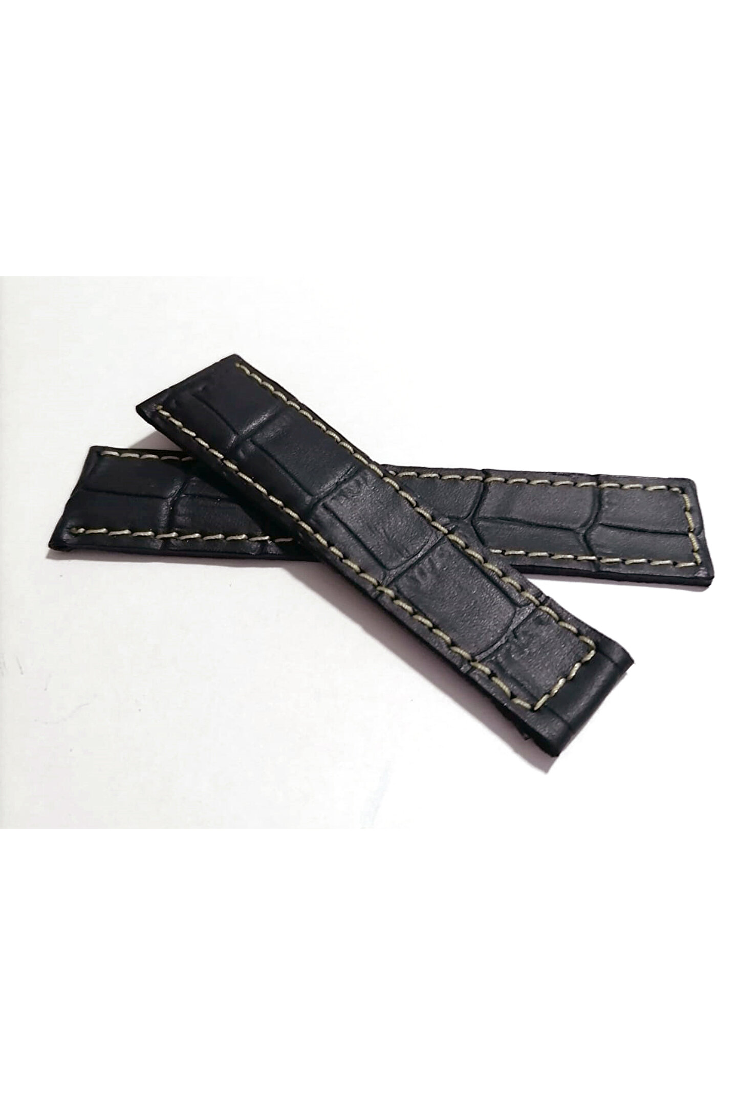 Tag-heuer Uyumlu 20-18 Beyaz Dikişli Siyah Hakiki dana derisi