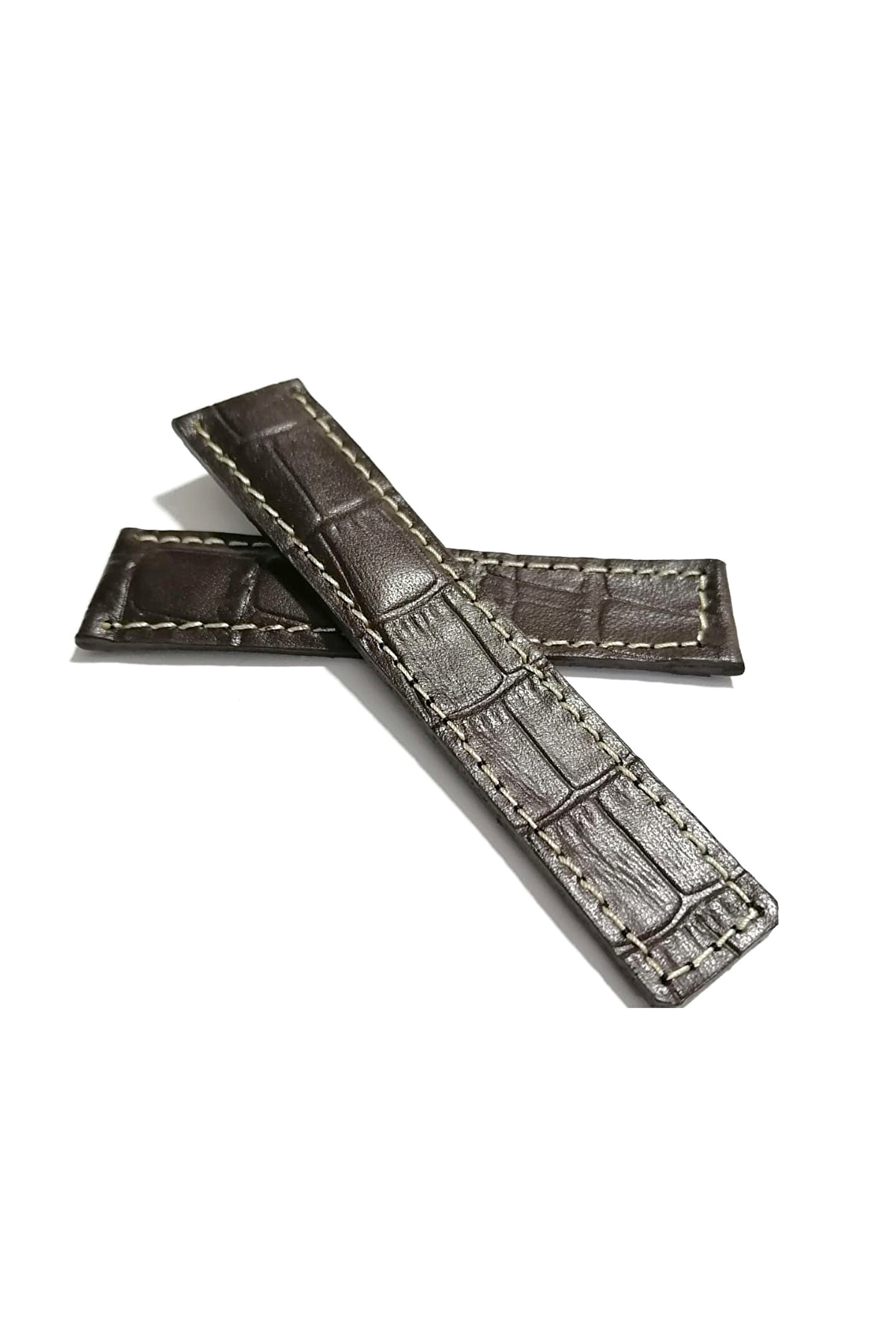 Tag-heuer Uyumlu 22-18 Beyaz Dikişli Koyu Kahverengi Hakiki dana derisi ( 14 )