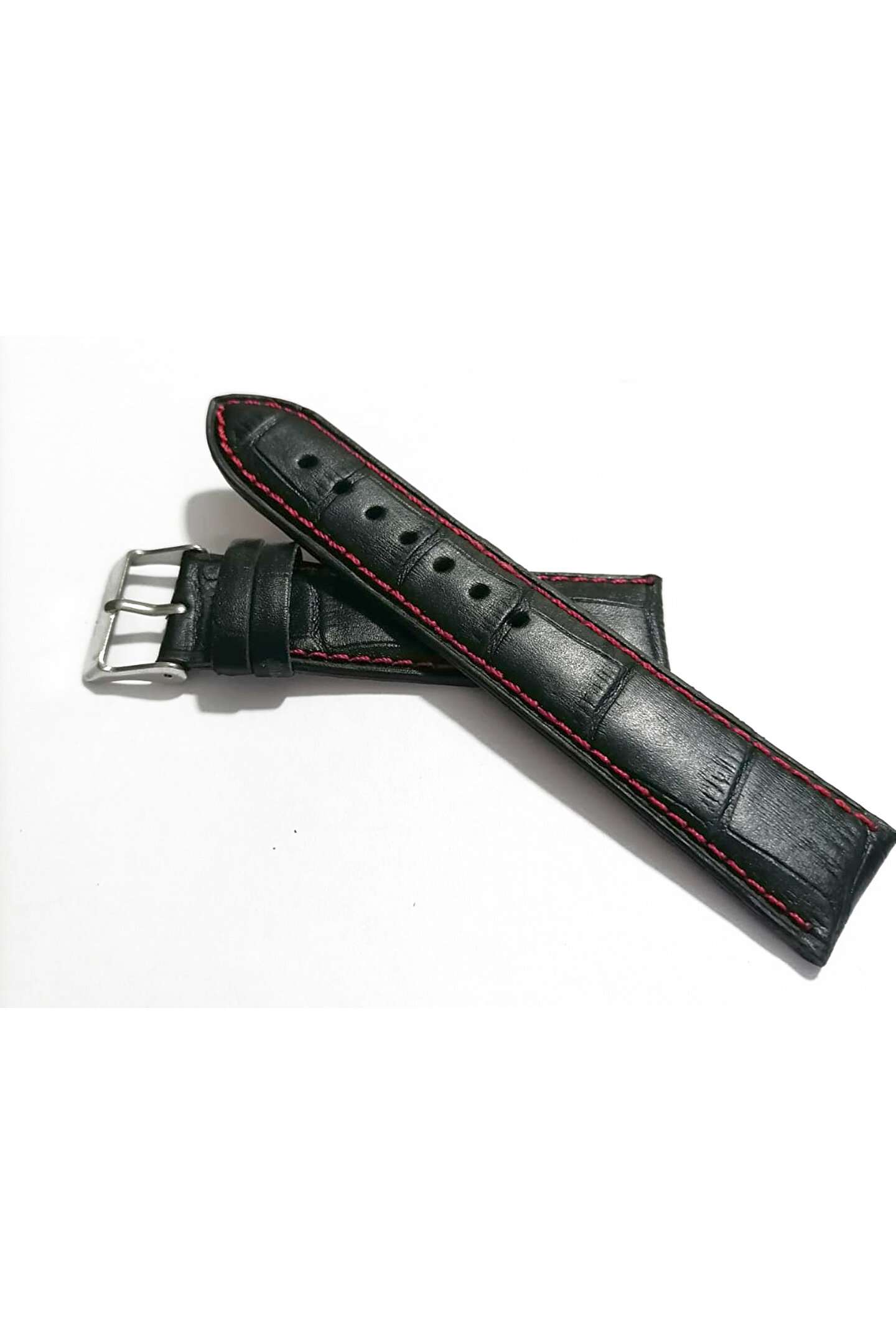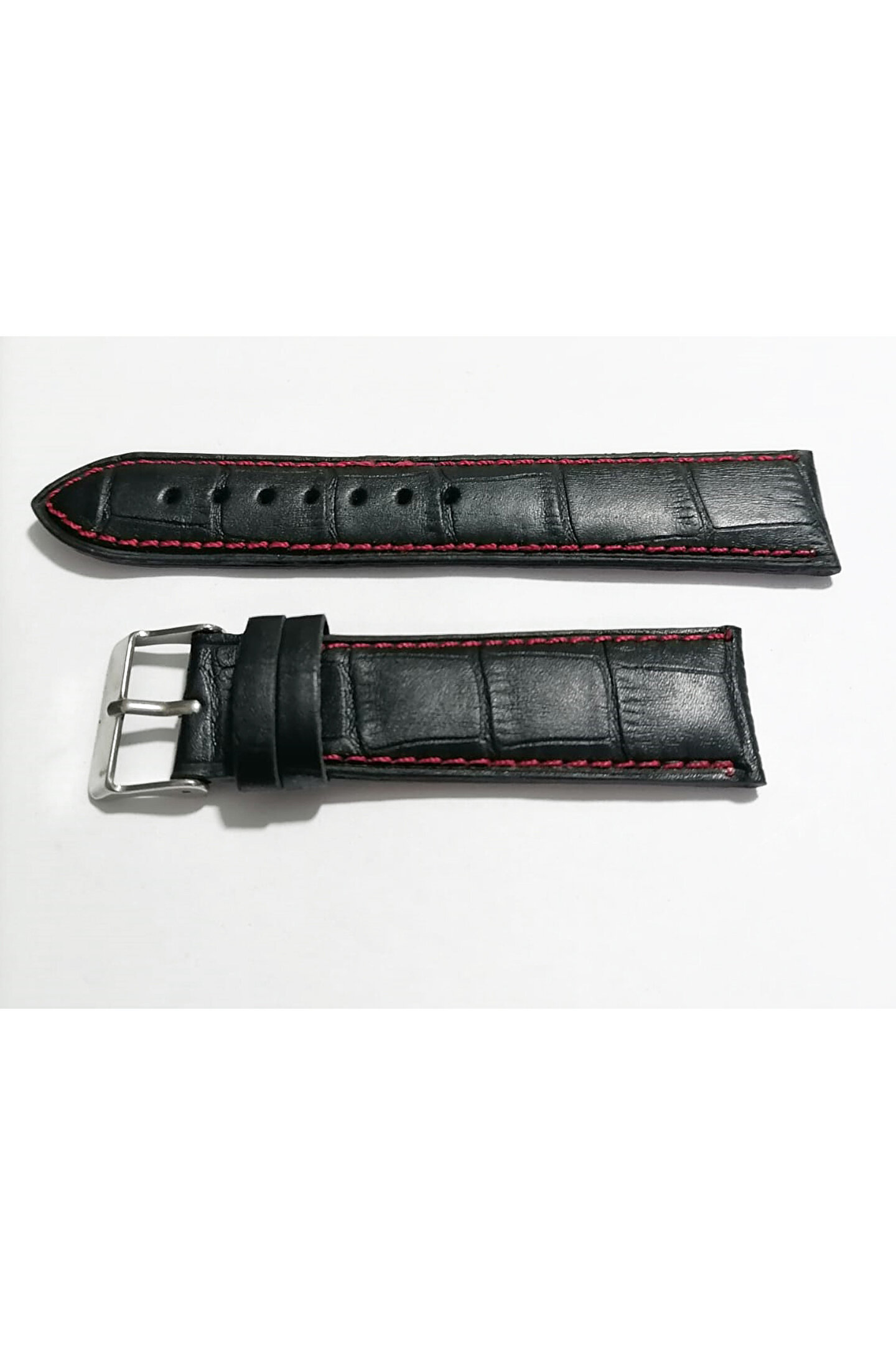 FADO  Tüm saate Uyumlu &  Hakiki  Dana  Derisi Saat Kordonu  22 mm  ( 131)  Kırmızı Dikişli  siyah