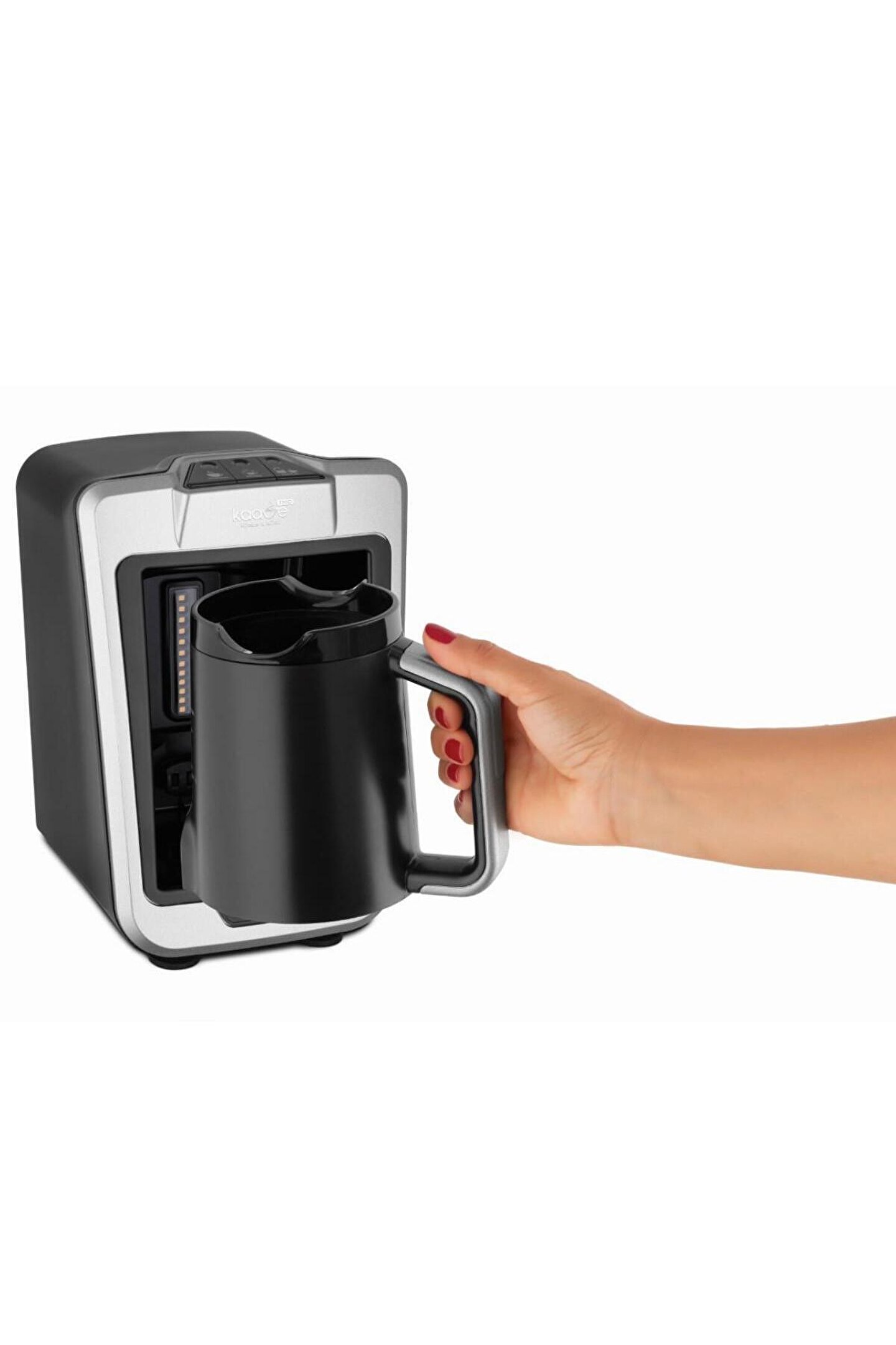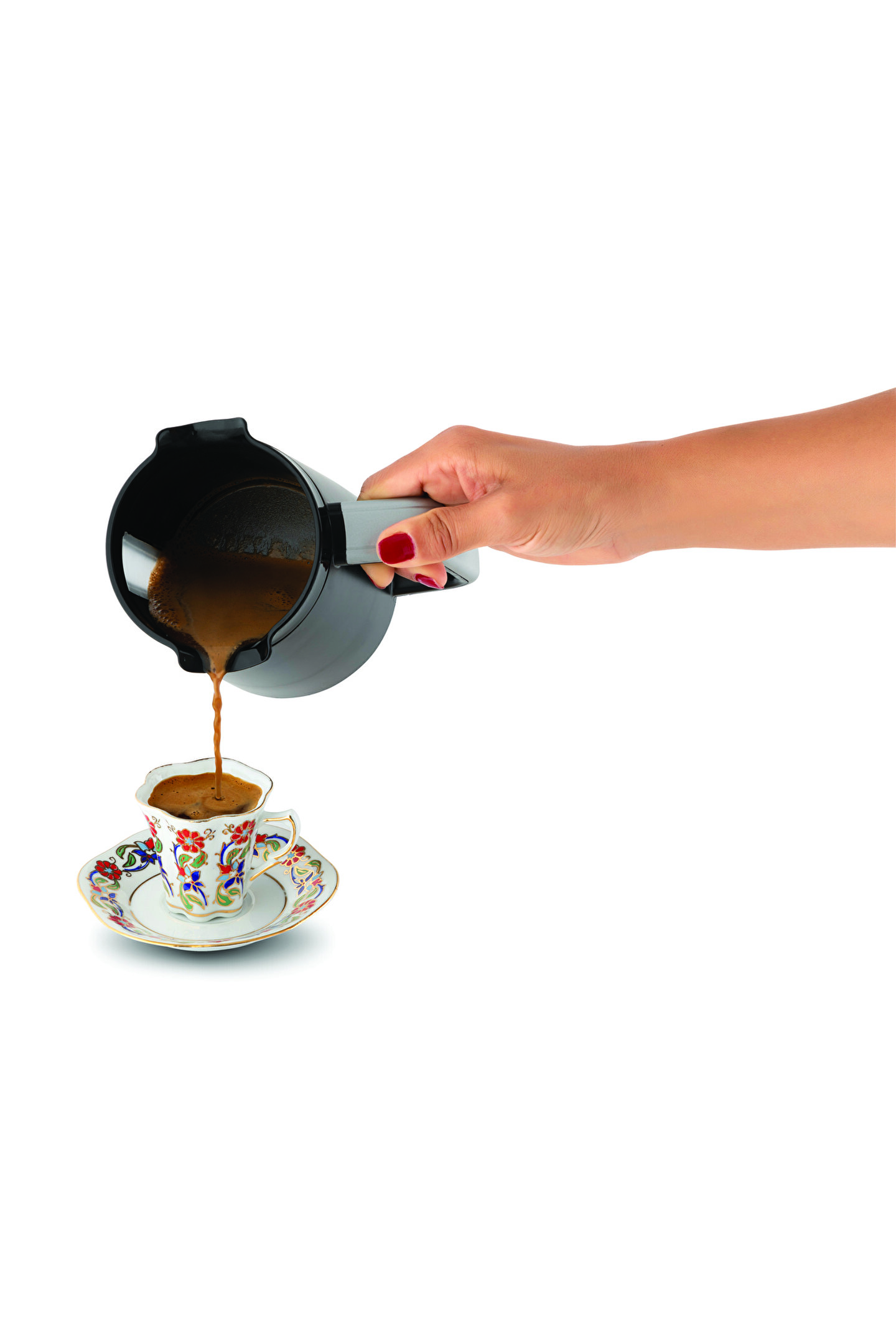Kaave Trio Közde & Sütlü Türk Kahvesi Makinesi ile tek tuşla lezzetli sıcak içecekler hazırlayın! Sütlü sıcak çikolata, sütlü kahve ve sütlü Türk kahvesi gibi favori içeceklerinizi dakikalar içinde yapabilirsiniz. Sıcak içeceklerinizin ideal tat ve kıvamda olması için vegan süt, laktozsuz süt ve süt tozu gibi alternatiflerin kullanılmaması önerilir.;Susuz çalışmaya karşı koruma özelliği sayesinde makineniz otomatik olarak kapanarak güvenli bir kullanım sunar. Aydınlatmalı pişirme yuvası, kahve hazırlama sürecini daha keyifli hale getirir. İçeceklerinizi mükemmel ölçüde hazırlamanız için özel kahve ölçü kaşığı ile birlikte gelir.;Su geçirmez teknolojisi sayesinde cezveyi kolayca duru su ile yıkayabilirsiniz. Kompakt tasarımı mutfak tezgâhınızda minimum yer kaplar. Farklı renk seçenekleri ve şık, modern tasarımı ile her mutfağa uyum sağlar.;Kahvenizi kömür ateşinde ağır ağır pişirilmiş gibi közde Türk kahvesi lezzetine dönüştürür.;Sütlü sıcak çikolata, Türk kahvesi, sütlü kahve gibi birbirinden lezzetli sütlü sıcak içecekler hazırlayabilirsiniz.;Yenilikçi sesli ve ışıklı uyarı sistemi sayesinde Türk kahveniz veya sıcak içecekleriniz hazır olduğunda hemen sizi bilgilendirir.