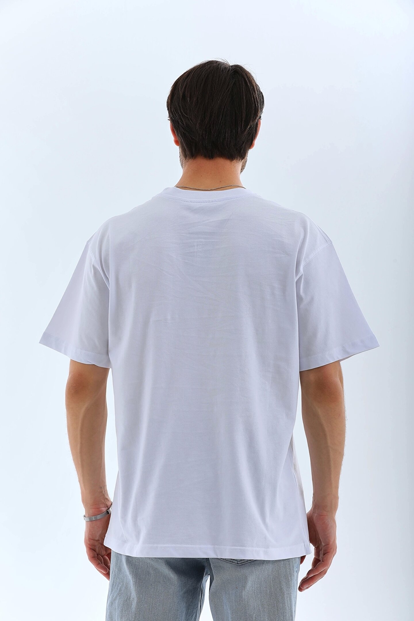 Unisex Oversize Düz Bisiklet Yaka T-Shirt - Beyaz