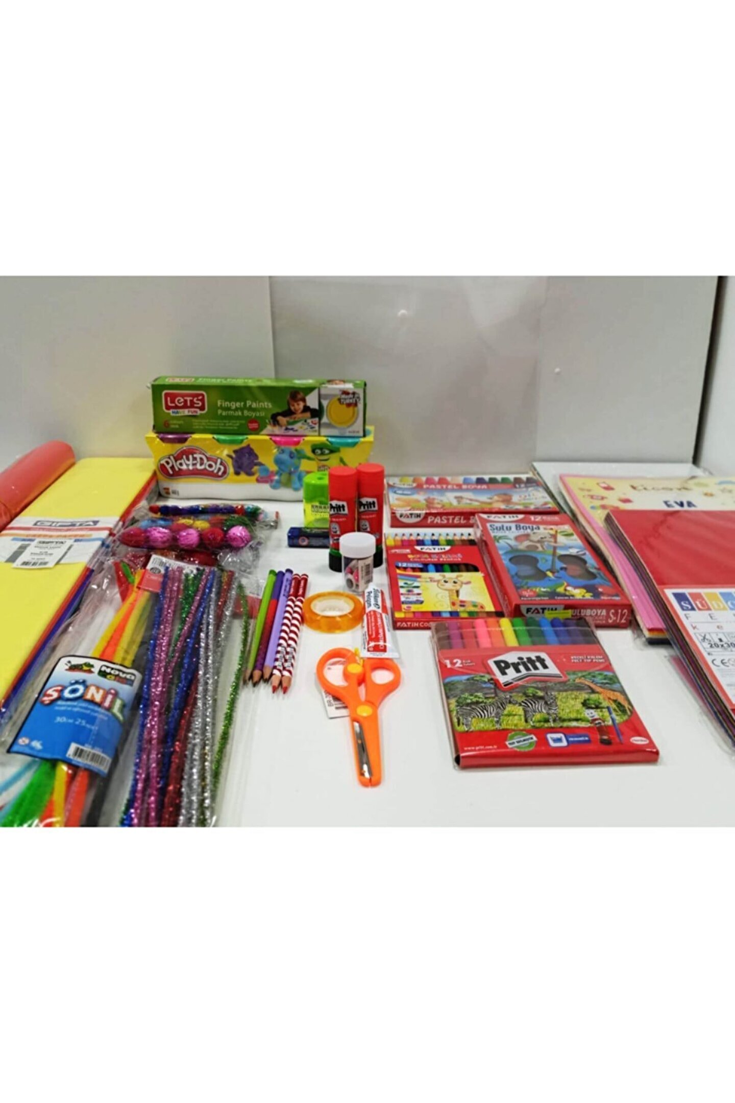 1; SINIF KIRTASİYE OKUL SETİ 12Lİ FATİH KURUBOYA 12Lİ FATİH SULIUBOYA 12Lİ FATİH PASTEL BOYA 12Lİ PRİTT KEÇELİBOYA KALEMİ EVA KEÇE SİMLİ EVA 10 RENK FON KARTONU 50*70 CM 10 RENK GRAFON KAĞIDI PONPON SİMLİ VE NORMAL ŞÖNİL BANT PELİGOM YAPIŞTIRICI MAKAS SİLGİ KALEMTRAŞ STİCK YAPIŞTIRICI OYNAR GÖZ OYUN HAMURU LETS PARMAK BOYASI 3 ADET FC; KURŞUN KALEM 2 ADET KIRMIZI KURŞUN KALEM;