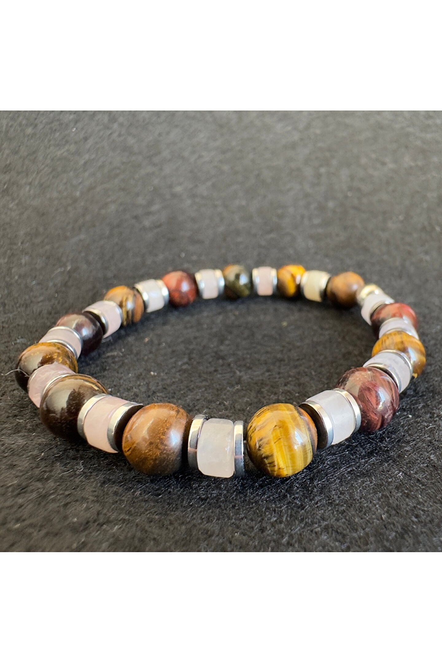 Çakra tasarım modelidir.; kaplan gözü ve kuvars kullanılmıştır.; ara bağlantılar hematit taşıdır.; unisex kullanıma uygundur.; her yaş grubu için uygundur.; esnek ipi sayesinde her bileğe uygun olur.