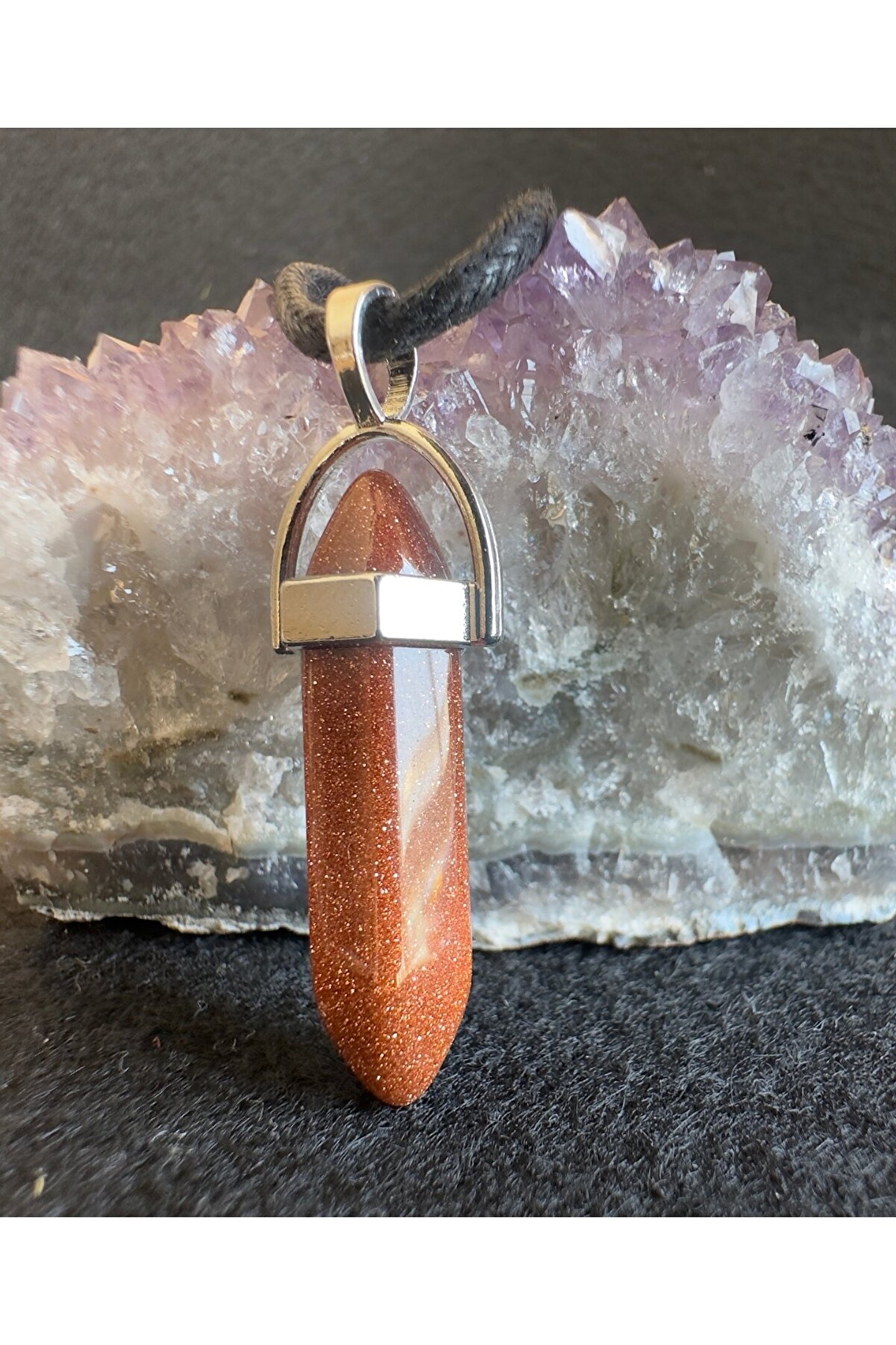 Yıldız taşı kolye ucu.; .; Deri kolye ipi beraber gönderim sağlanır.