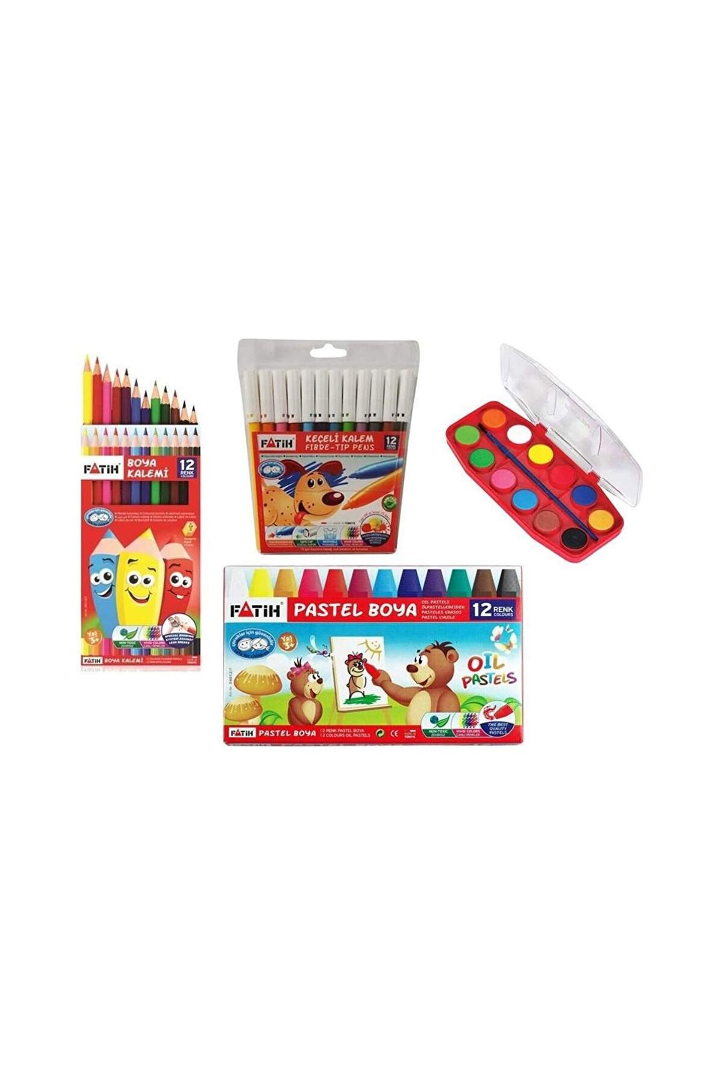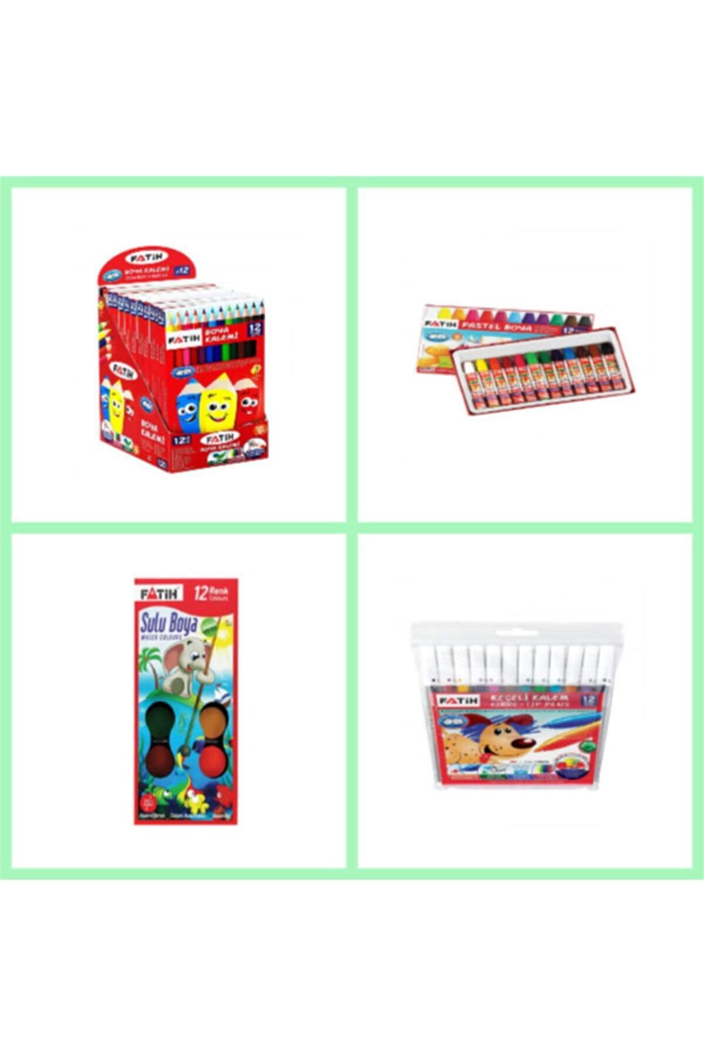 FATİH BOYAMA SETLERİ 12'Lİ KURU BOYA 12'Lİ SULU BOYA 12'Lİ PASTEL BOYA 12'Lİ KEÇELİ KALEM