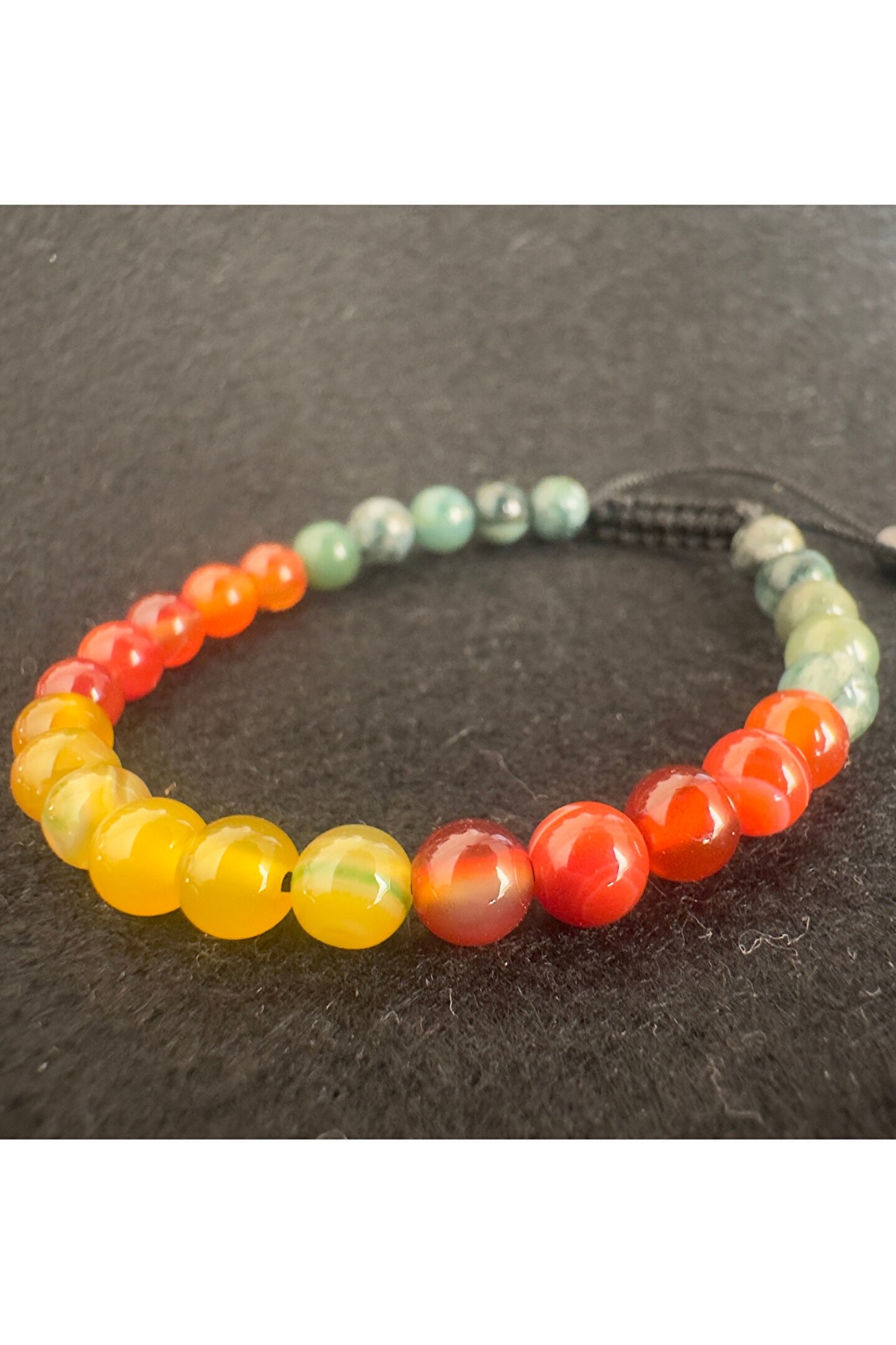 Üç renk akik taş örme bileklik modeli.6 mm taşlar kullanılmış olup asansör tipi kapaması vardır.; her yaş grubuna ve her bileğe uygun olur.; yedek misina ipi ile gönderim sağlanmakta.