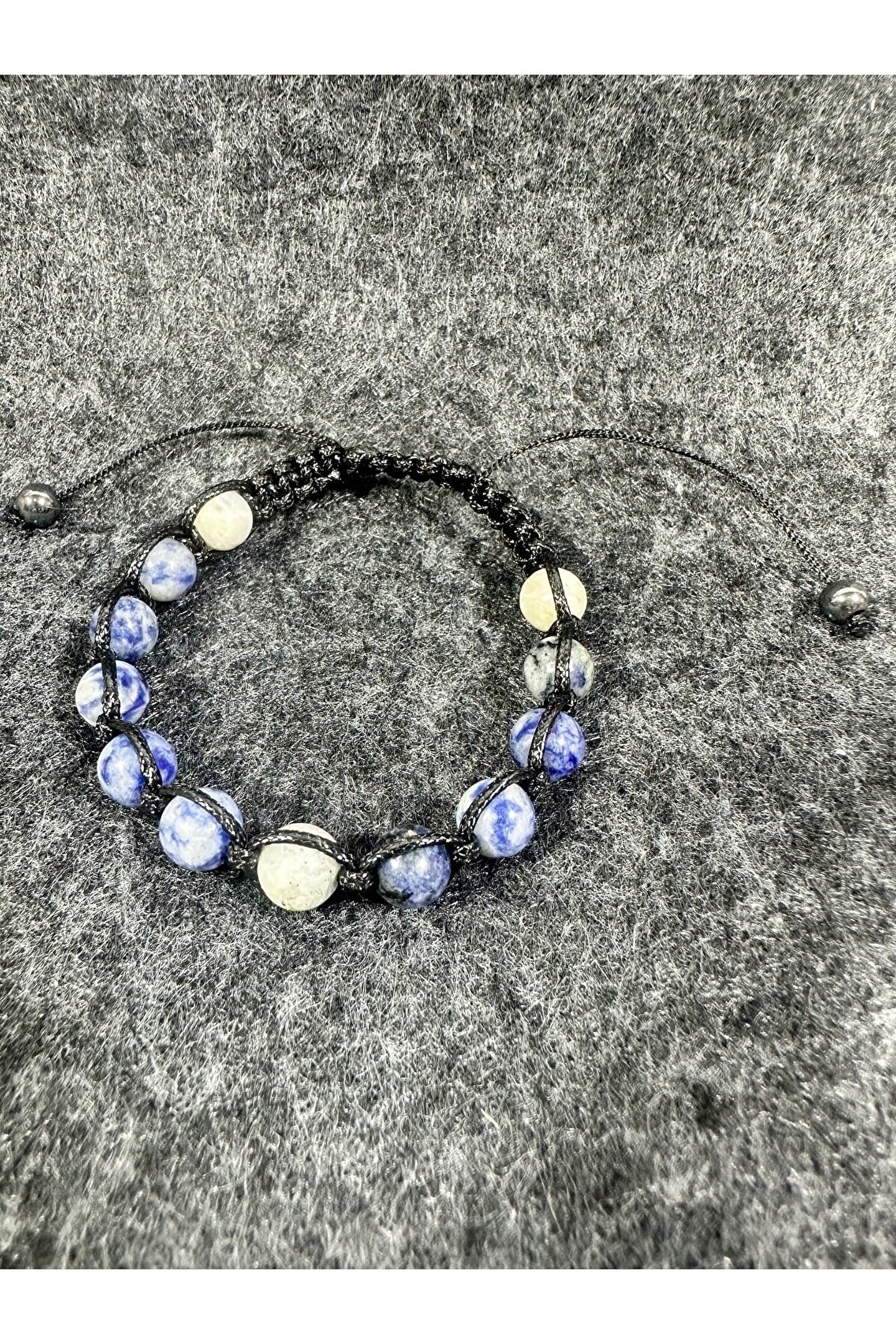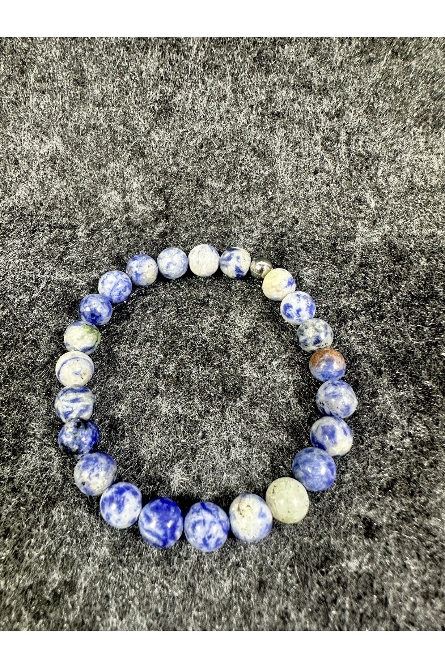 Doğal taş bileklik, her bir bileklikte bulunan benzersiz desen ve renklerle doğanın zarafetini yansıtır;; Azurit taşı, mavi ve mor tonlarıyla göz alıcı bir görünüm sunar ve şıklığınızı tamamlar;; Doğal taş kullanımı sayesinde, her bileklik eşsiz bir hikaye anlatır ve kişisel tarzınıza özgün bir dokunuş katar;; Kaliteli malzemeler kullanılarak üretilen bu bileklik, uzun süreli kullanım için idealdir ve dayanıklılığıyla ön plana çıkar;;