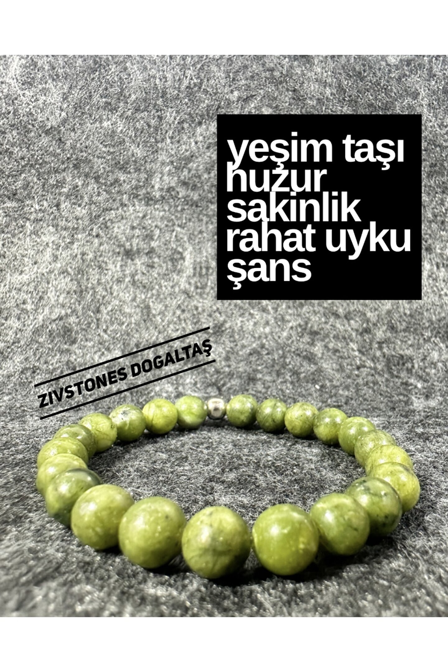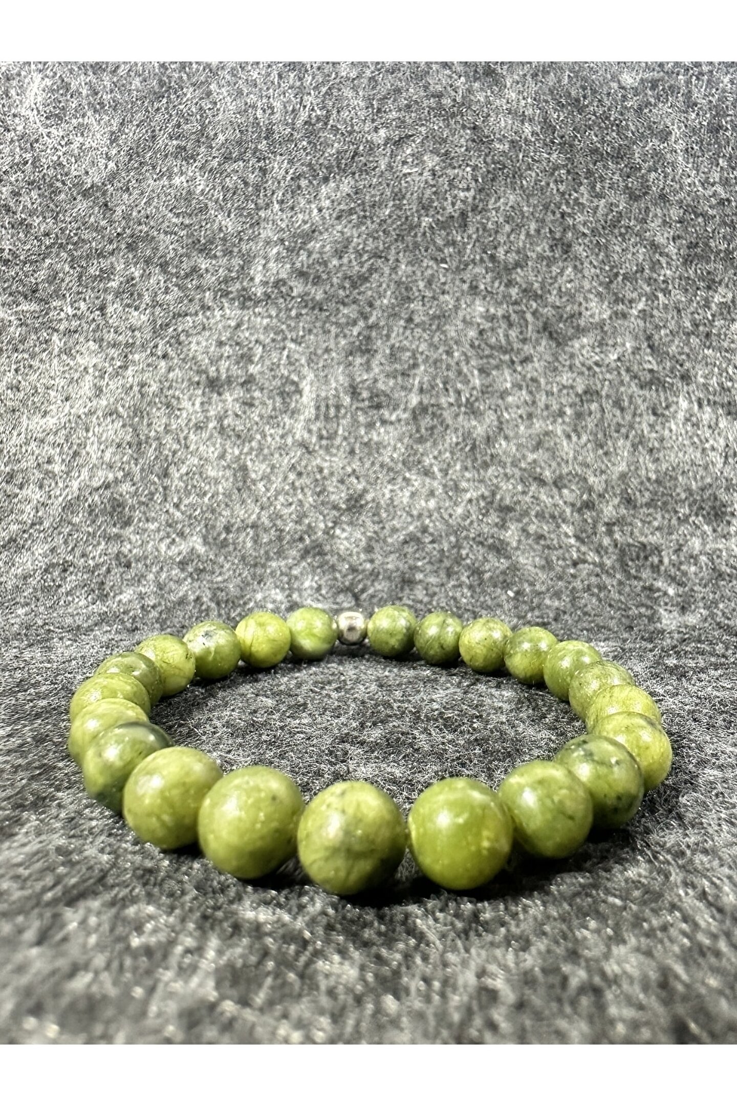 Doğal Yeşim taşı kullanılarak üretilmiş, zarif ve şık bir aksesuar; Her bileklik benzersizdir; her biri farklı bir doğa harikası taşa sahiptir; Doğal taş materyali ile hem dayanıklı hem de estetik bir görünüm sunar; El yapımı olması, her bir bilekliğin özgün ve kişisel bir dokunuş taşıdığını garanti eder;