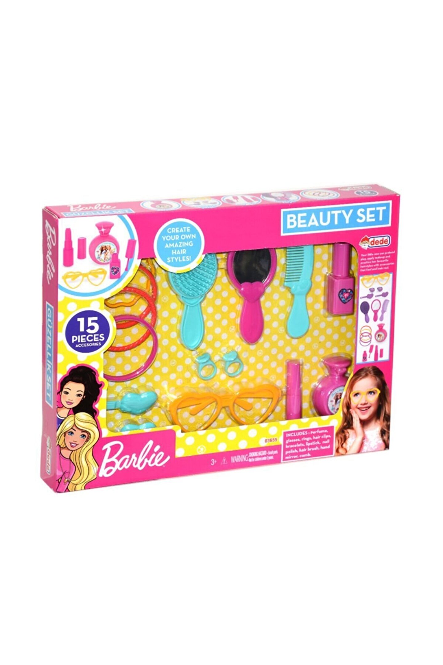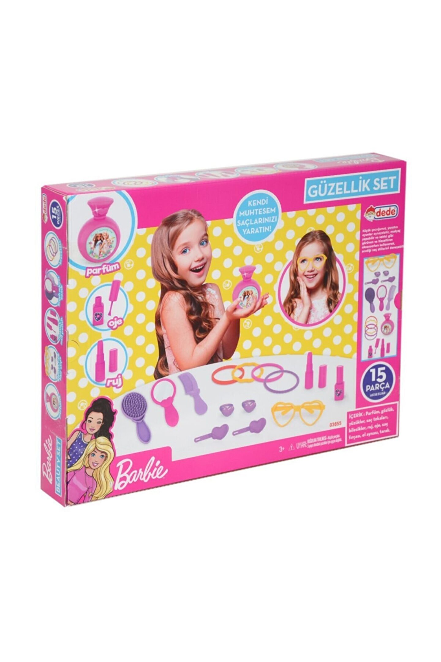 Çocukların hayal gücünü geliştiren Barbie kutulu güzellik seti, 15 parça ile tam bir güzellik deneyimi sunar; Yaş grubu uygunluğu sayesinde, 3 yaş ve üzeri çocuklar için idealdir ve onların yaratıcılıklarını teşvik eder; Oyuncak bebek ve aksesuarlarından oluşan bu set, çocukların eğlenceli vakit geçirmelerini sağlar ve onlara kişisel bakım rutinlerini öğretir; Barbie kutusu, oyuncakların düzenli bir şekilde saklanmasına olanak tanır ve çocukların oyuncaklarını kolayca bulmalarını sağlar;