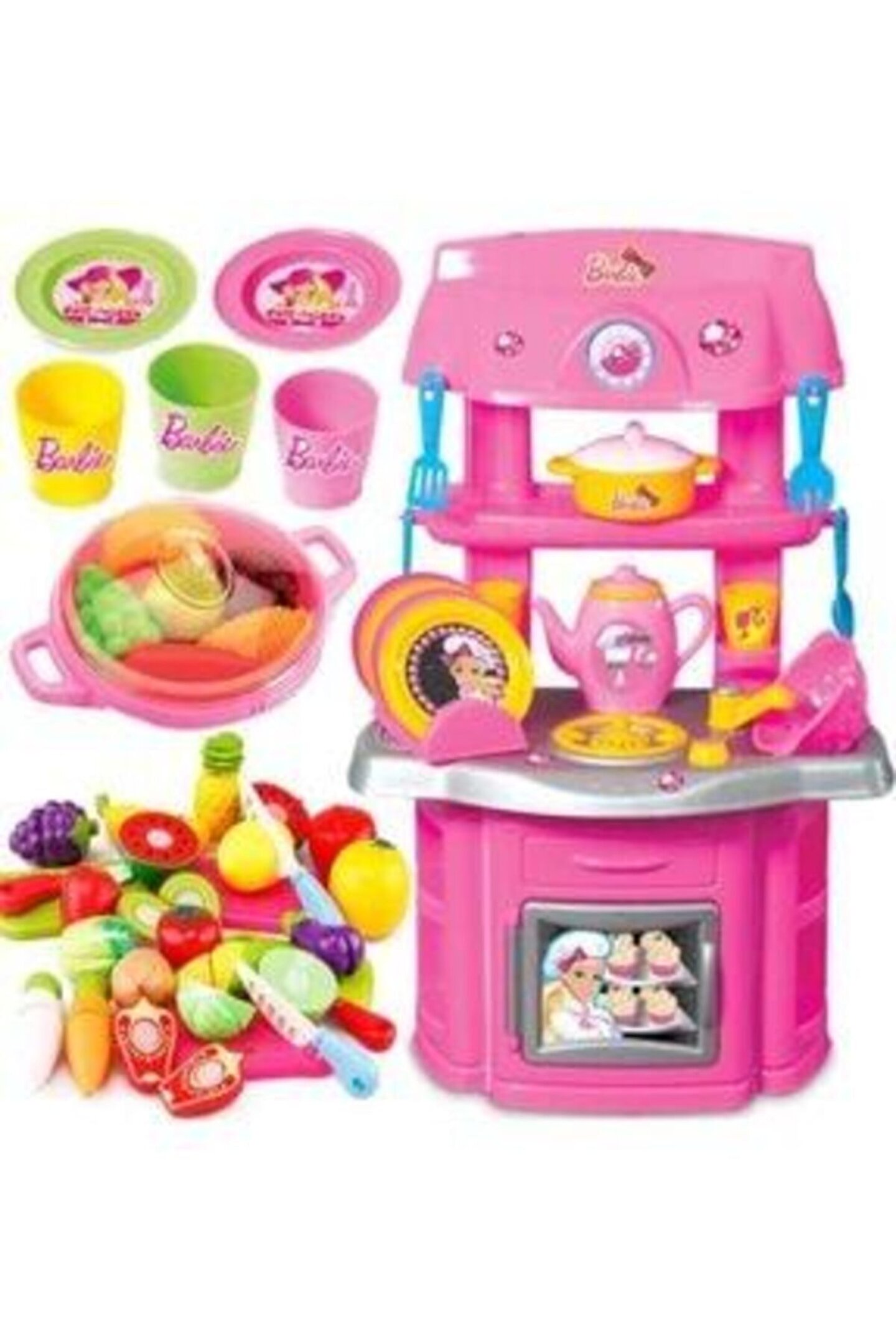 Barbie Oyuncak Şef Mutfak Seti + Tencere + Kesilebilen Meyve Sebze Set Kız Oyuncak