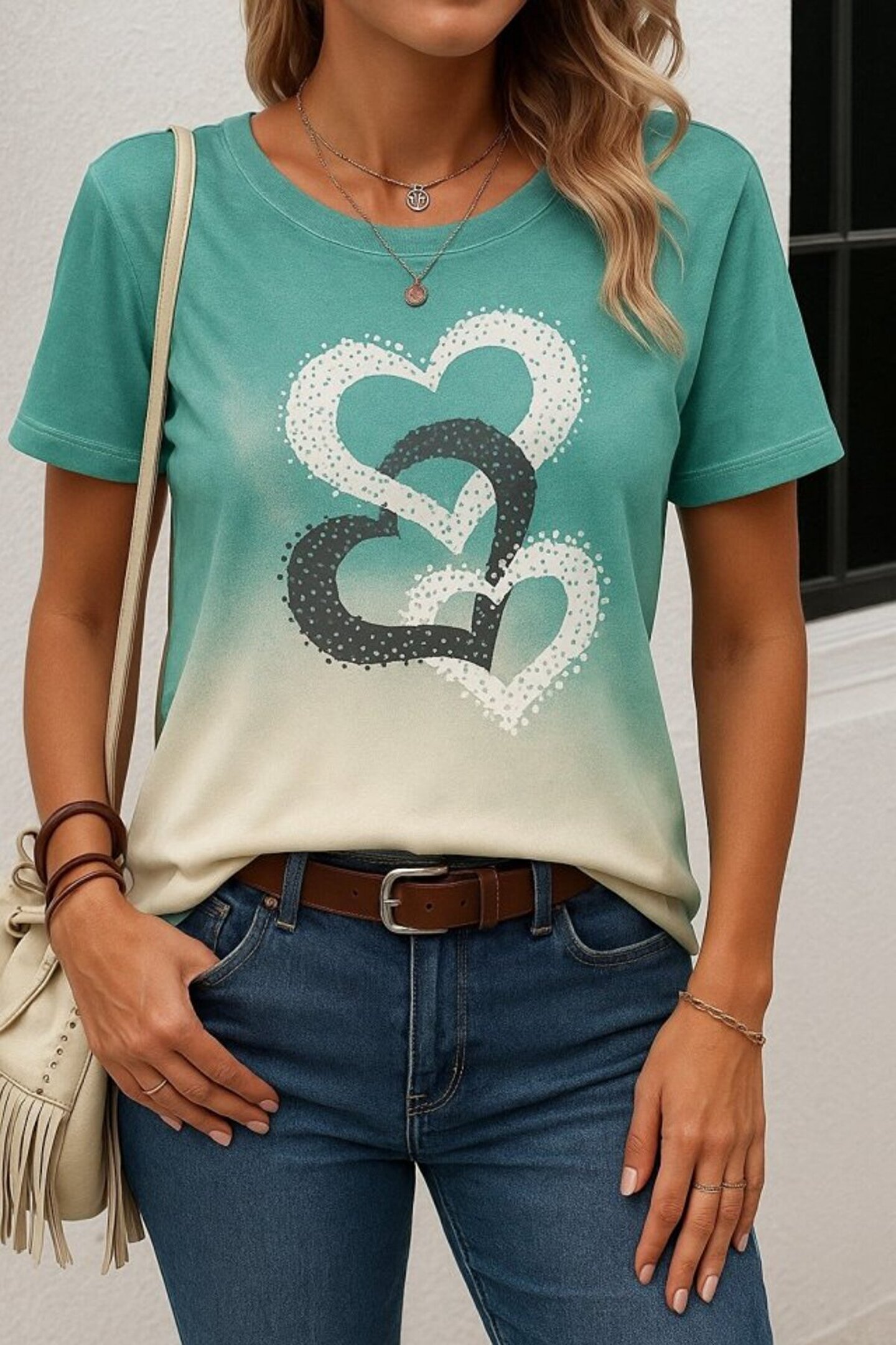 EQURİ Kadın Kısa Kollu Bisiklet Yaka Kalp Baskılı Süprem Bluz