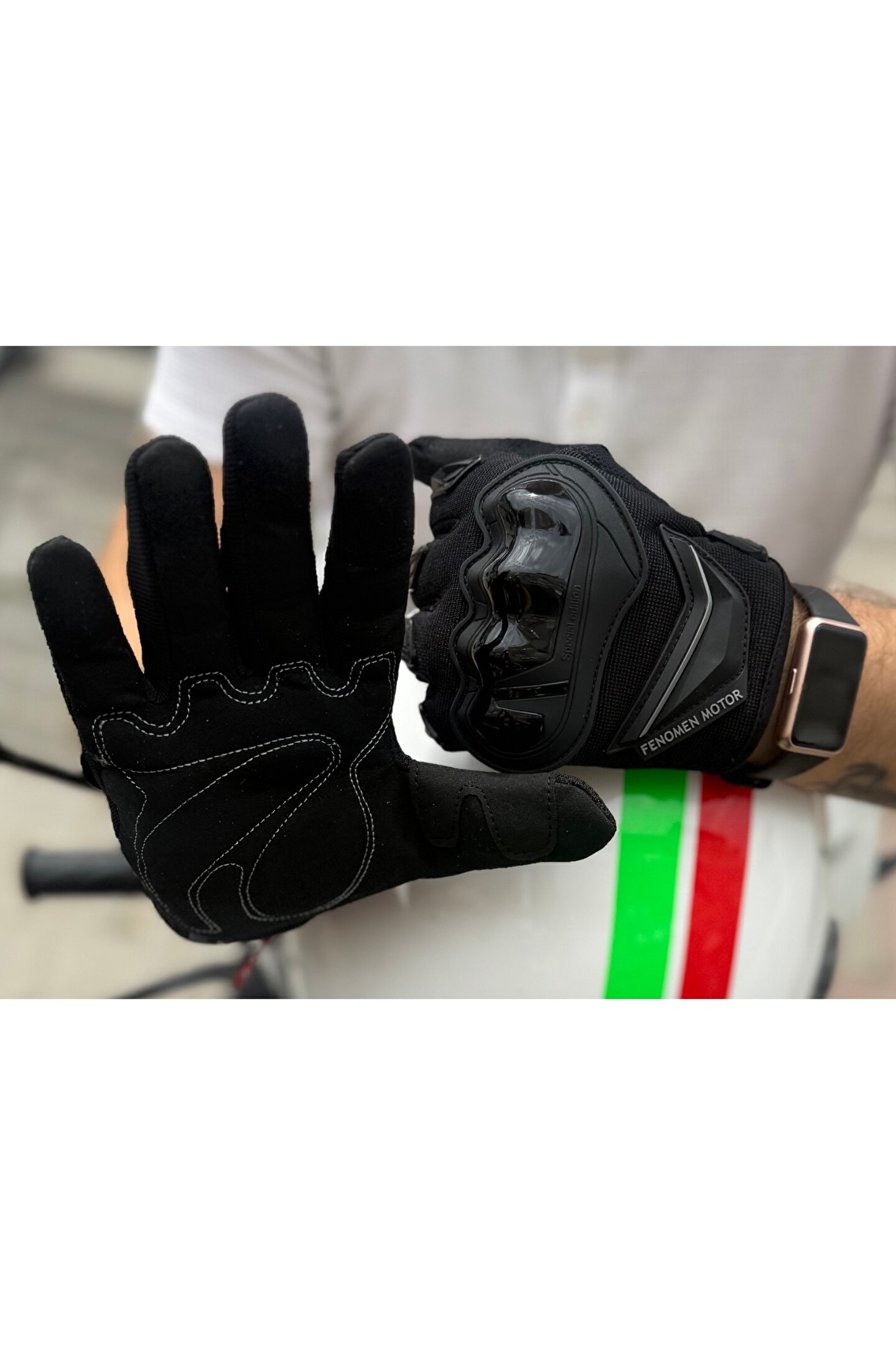 - Yaz aylarında motor sürüşlerinizde konfor ve koruma sağlayan, 10 parmak dokunmatik özelliği ile üstün kullanım sunan motosiklet eldiveni.; - Hem erkek hem de kadın sürücüler için uygun tasarım, unisex kullanım imkanı tanır.; - Üretim kalitesiyle dayanıklılığı ve uzun ömürlülüğü garanti eder.; - Beden seçeneği olarak M-L-XL tüm boyutlardaki motorcu el ölçülerine mükemmel uyum sağlar.; BİR BEDEN BÜYÜK ALMANIZI TAVSİYE EDERİZ