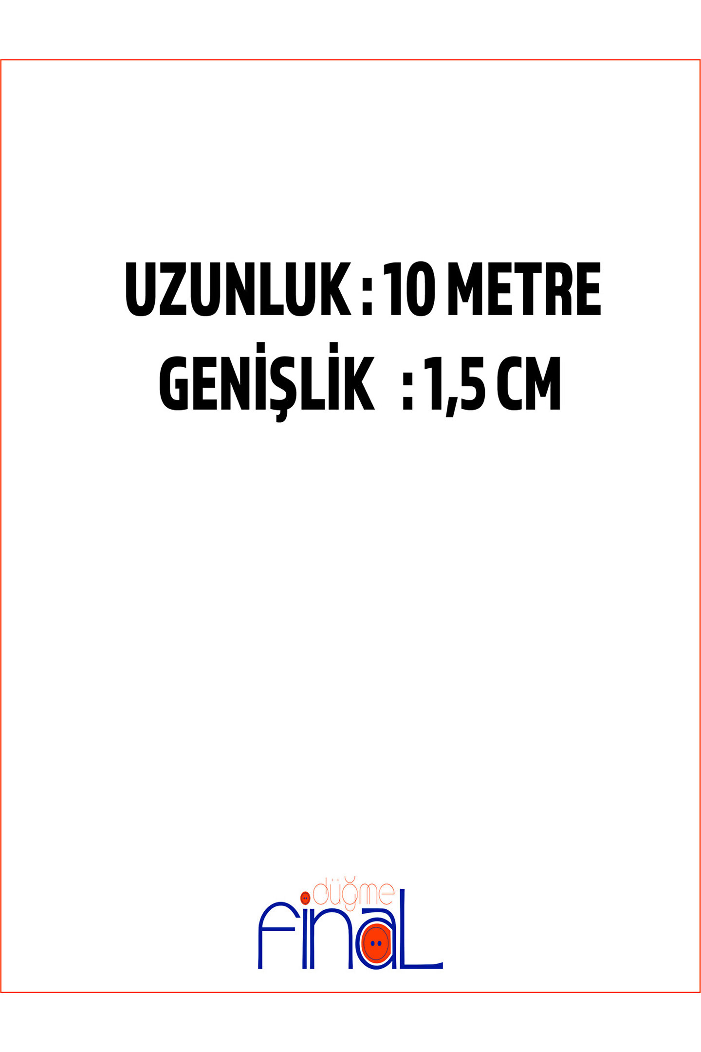 Final Düğme tarafından üretilen 1,5 cm × 10 m siyah yassı lastik, dar dokuma tekniği ile üretilmiş olup dayanıklılık ve düzenli esneme sağlar.; Polyester ve doğal lateks bileşimi sayesinde hem konforlu hem de uzun ömürlü bir kullanım sunar.; Bel-paça uygulamaları, iç giyim ürünleri, ev tekstili ve hobi/dikiş projeleri için uygundur.; Ev tipi ve endüstriyel dikiş makineleri ile sorunsuz çalışır.