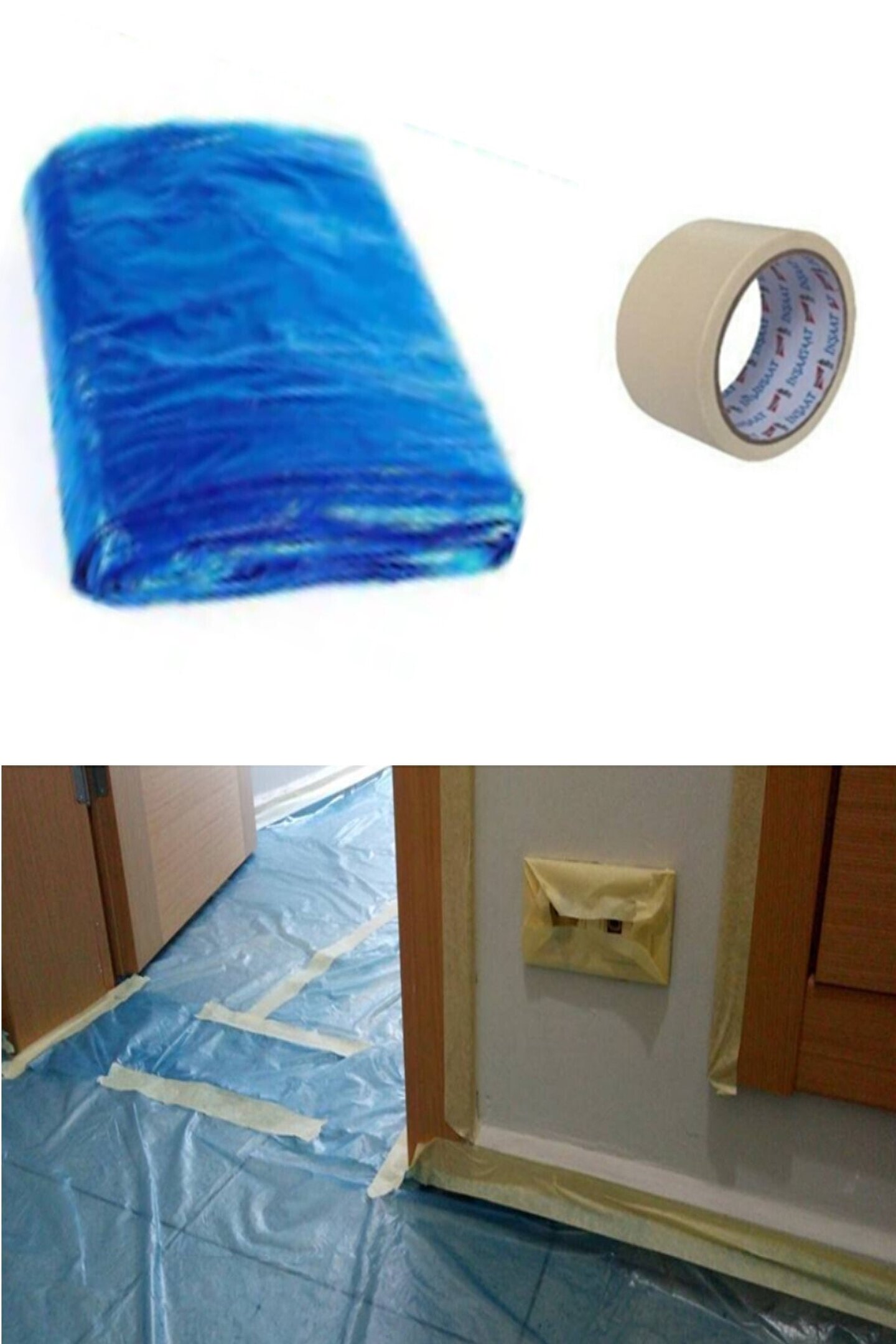 20 m2 (4metre x 5metre) kalın zemin eşya boya badana koruma örtüsü (branda) ; 48mmx25 metre dayson maskeleme kağıt bandı ; Boya hazırlığı için ideal ürünler ;