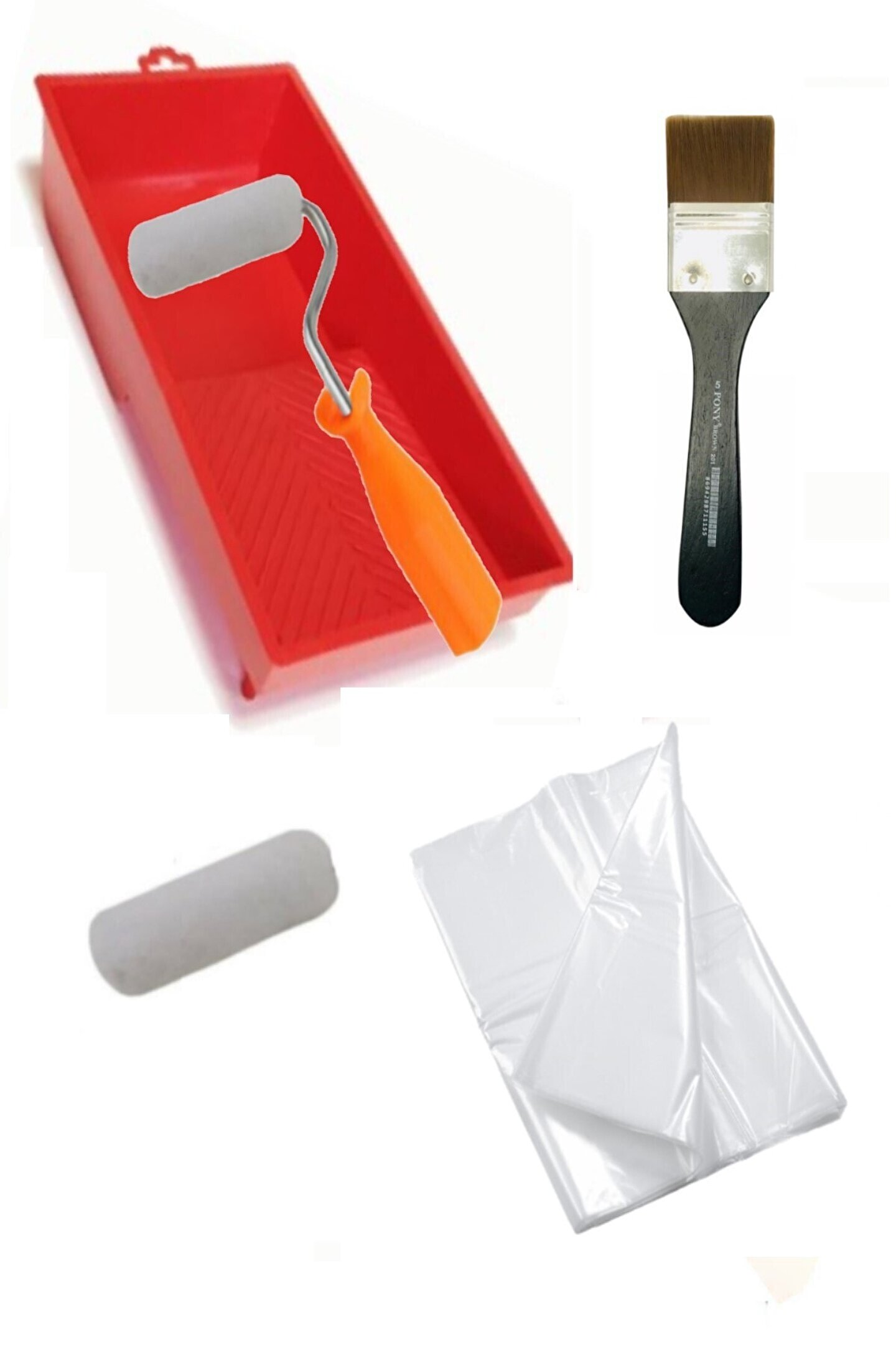 Akrilik boya uygulamalarınızda kullanabileceğiniz temel malzemeleri içerir 24x27 cm BOYA KABI (BOYA TAVASI); 10 CM KADİFE RULO TAKIM; 10 CM KADİFE RULO YEDEK; NO 5 İPEK FIRÇA; 10 M2 BOYA EŞYA ZEMİN KORUMA ÖRTÜSÜ (HIŞIR ÖRTÜ);