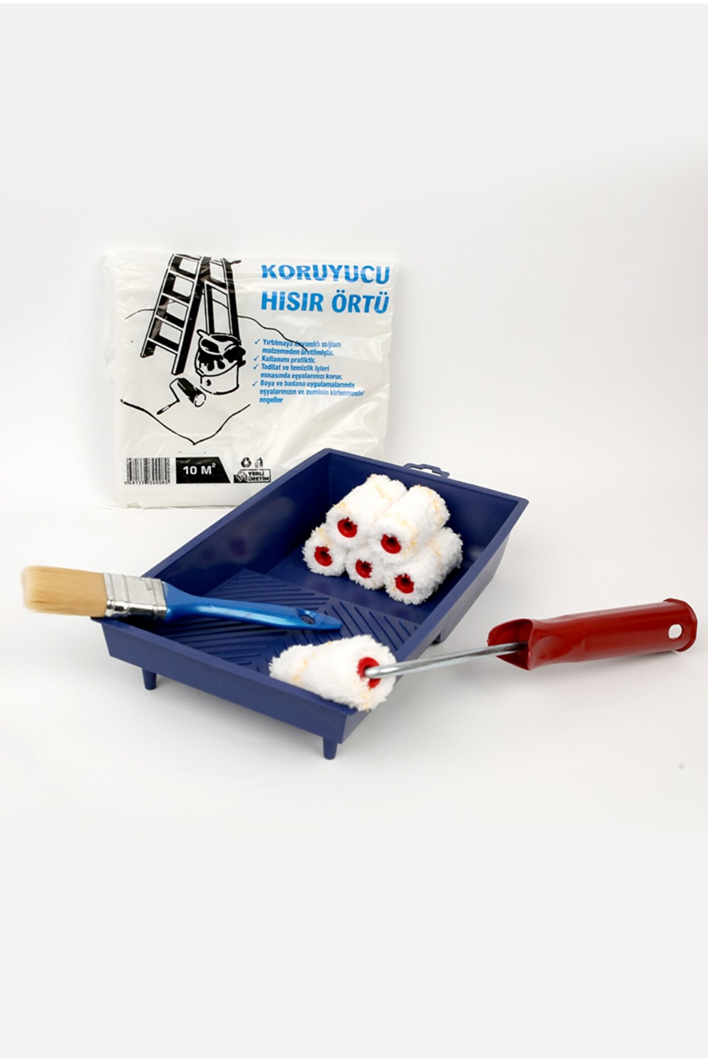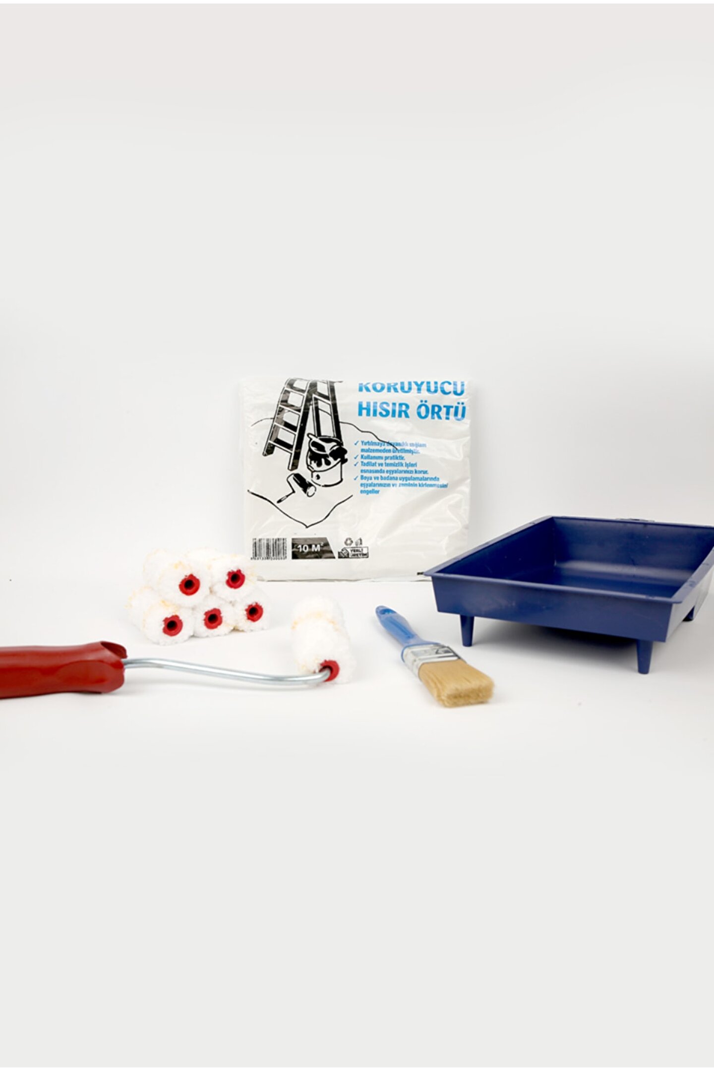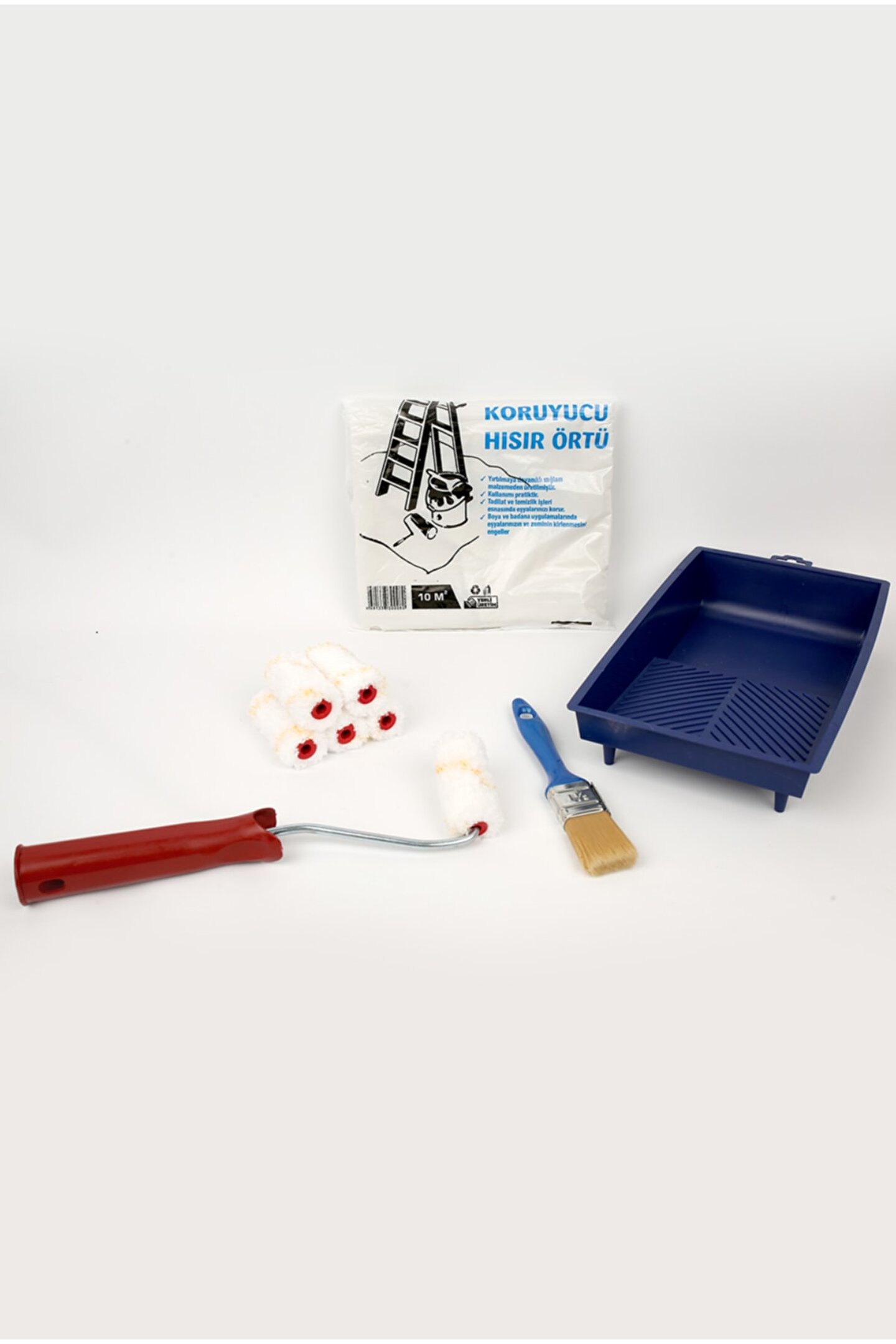 Popüler markalar rich ve cadence boyalar ile kullanım için seçilmiş ürünler ; Boya kabı tavası ; 5 cm polyamid rulo takım ; 5 cm polyamid rulo yedek 5 adet ; No 1.5 doğal kıl boya fırçası ; 10 m2 zemin boya akmasına karşı koruyucu hışır örtü ;