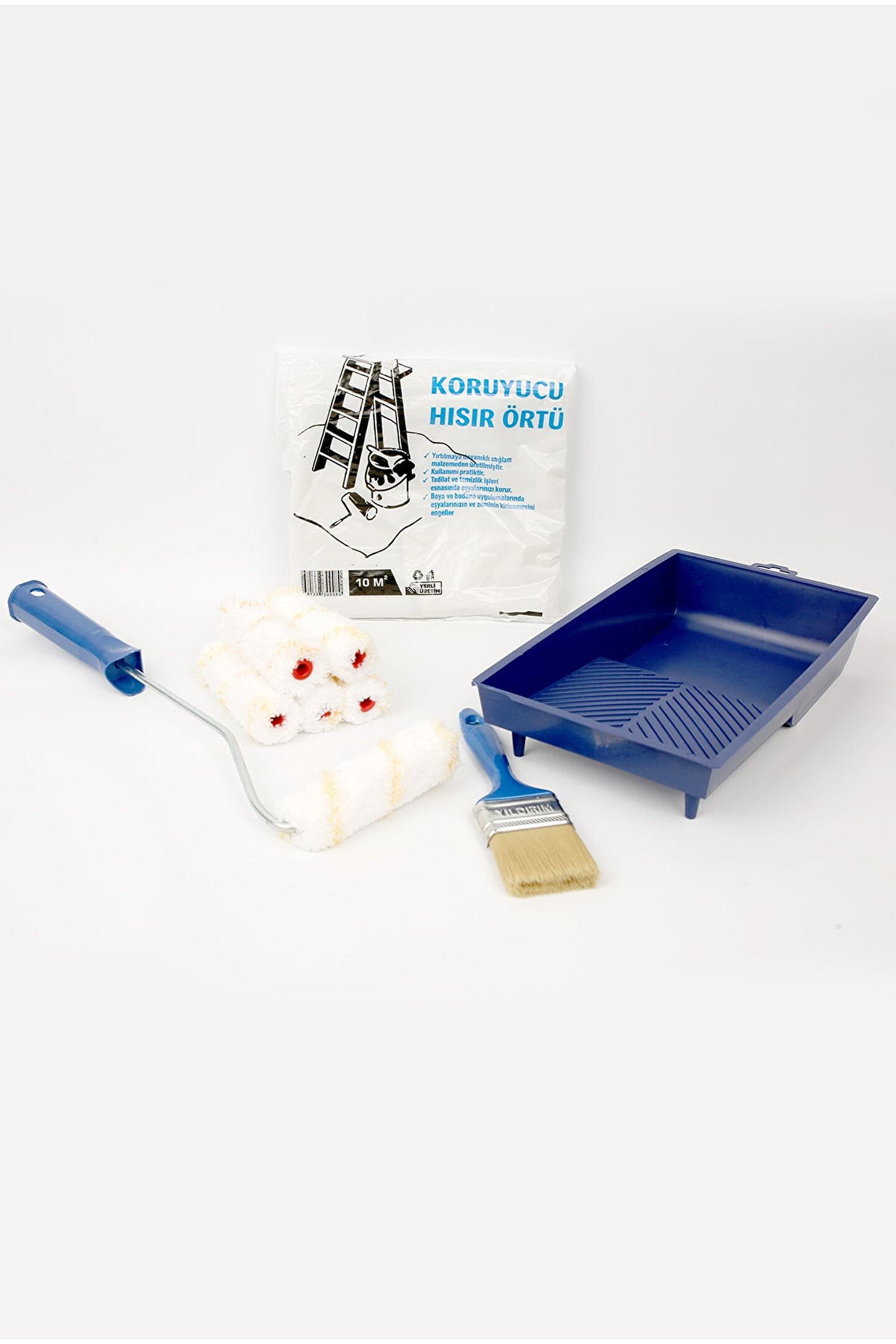 Popüler markalar rich ve cadence boyalar ile kullanım için seçilmiş ürünler ; Boya Kabı Tavası ; 10 cm Polyamid Rulo Takım ; 10 cm Polyamid Rulo Yedek 5 adet ; No 2 Doğal Kıl Boya Fırçası ; 10 m2 Zemin Boya Akmasına Karşı Koruyucu Hışır Örtü ;