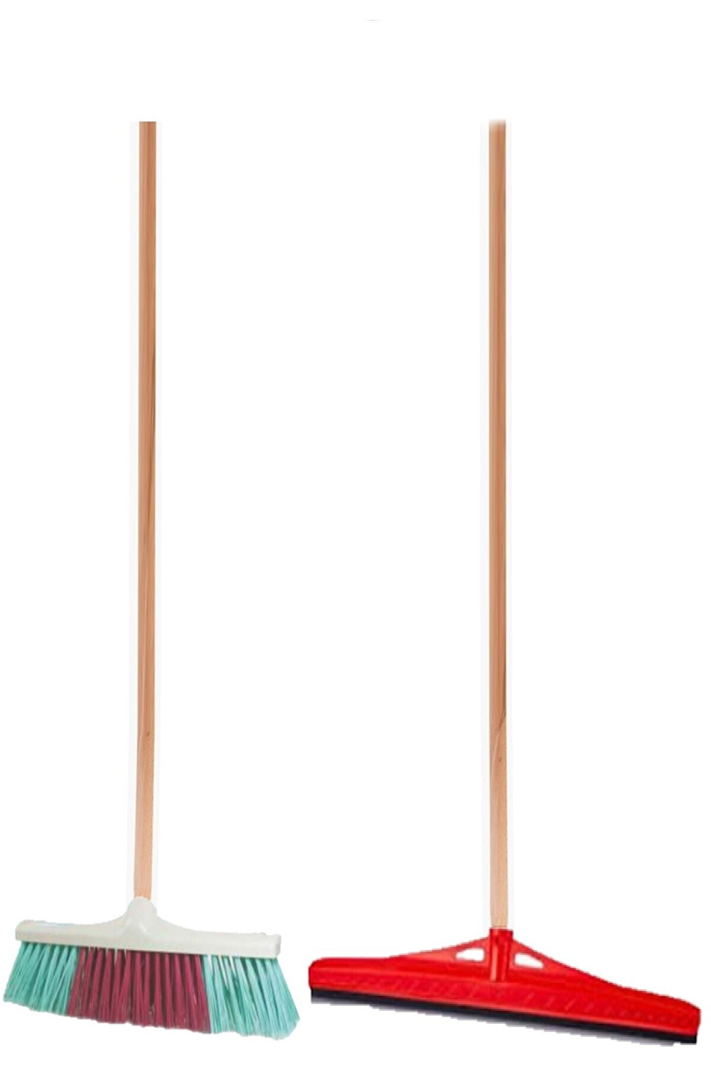 Ahşap saplı sert çalı fırçası süpürge 40 cm (renk stok durumuna göre farklı gönderilebilir) ; Ahşap saplı çekpas 55 cm (renk stok durumuna göre farklı gönderilebilir) ;