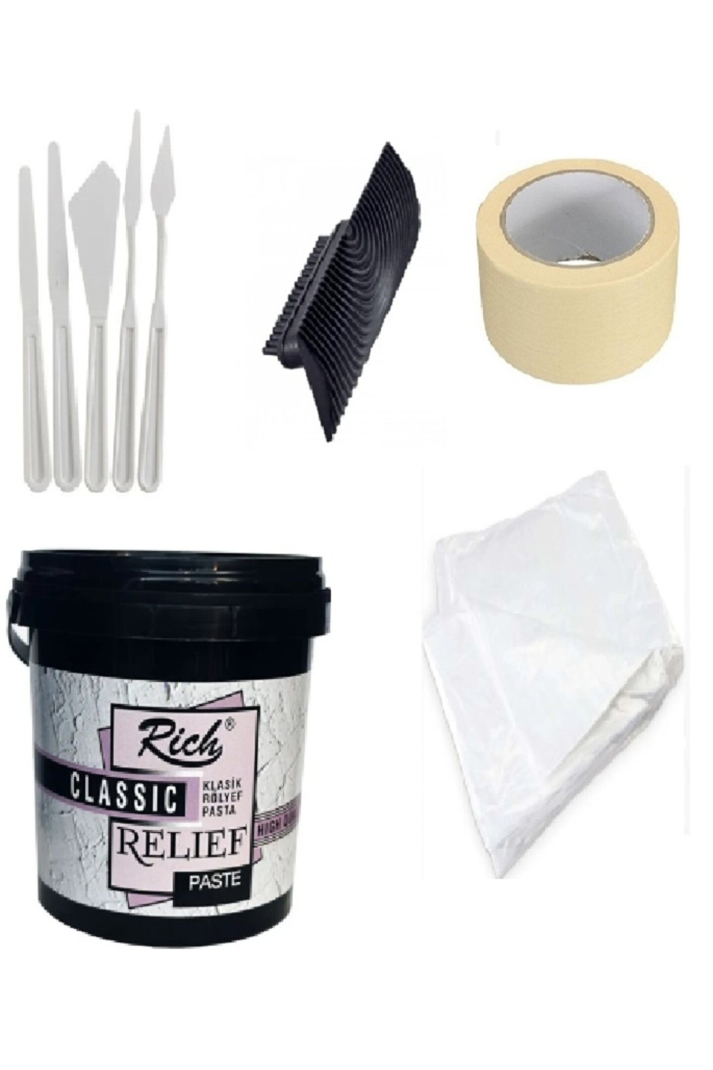 FırsatYapıMarket Doku Budak Yapma Seti Doku Tarağı 5li Spatül Maskeleme Bant Koruyucu Örtü Rölyef Pasta Set 1200 Cc