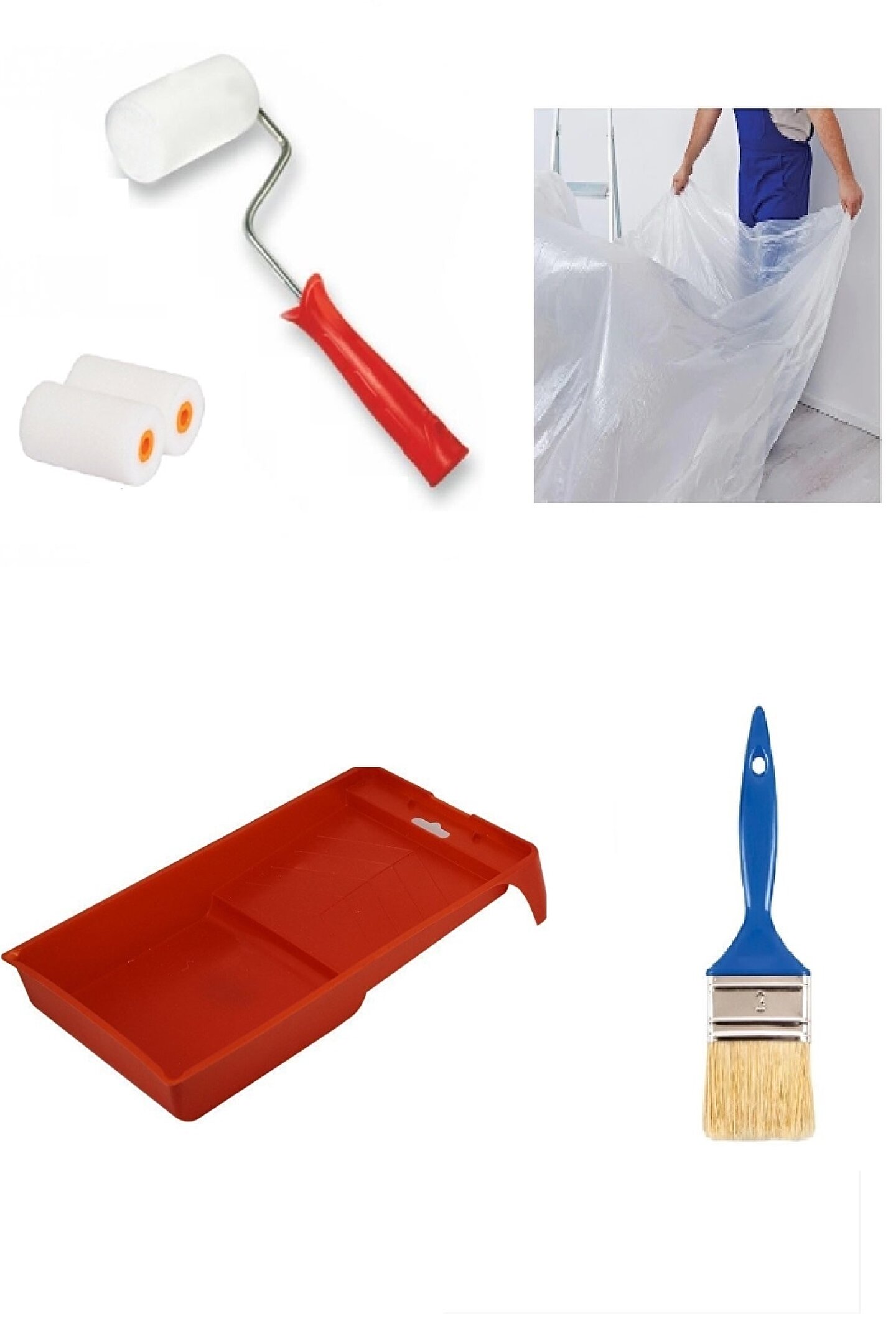 1 adet pürüzsüz boyama sünger rulo takım + 2 adet yedek uç 1 adet boya kabı 1 adet lüx kestirme fırça no 3 1 adet koruyucu örtü 10m2