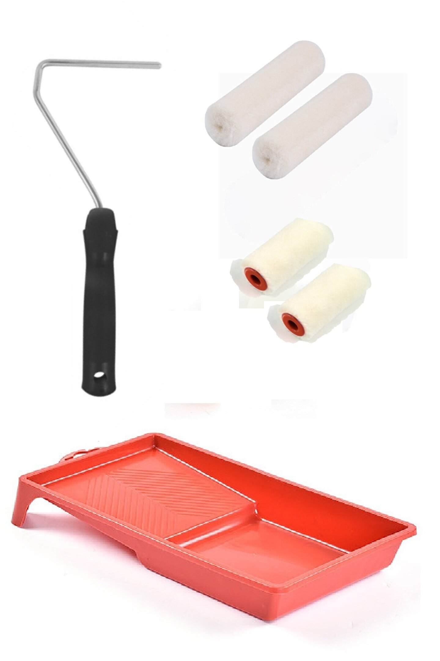 SETİMİZDE 10 CM KADİFE MOHER RULO 2 ADET; 5 CM KADİFE MOHER RULO 2 ADET; RULOLARA UYUMLU SAP 1 ADET; BOYA KABI 1 ADET; BULUNMAKTA Her türlü uygulamada güvenle kullanım; Özellikle Yağlı boya ve vernik çalışmalarına ekstra dayanıklı dizayn; Solventten etkilenmez;