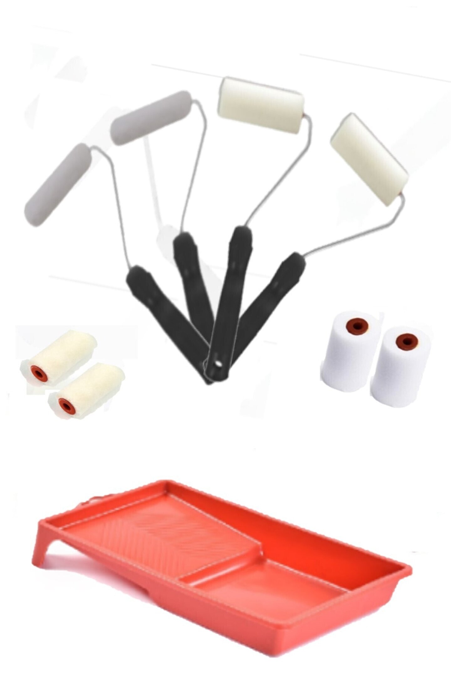 SETİMİZDE; 10 CM SÜNGER RULO TAKIM 2 ADET; 10 CM KADİFE RULO TAKIM 2 ADET; 5 CM SÜNGER RULO YEDEK 2 ADET; 5 CM KADİFE RULO YEDEK 2 ADET; 16X28 ÖLÇÜLERİNDE BOYA KABI; BULUNMAKTA