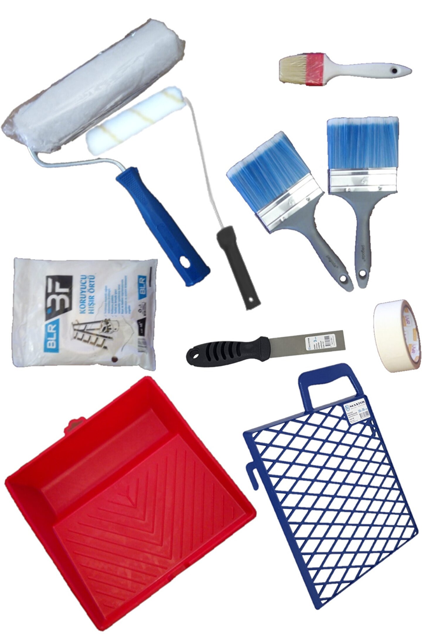 SETİMİZ 10 PARÇADAN OLUŞMAKTA, 20 CM İÇ VE DIŞ CEPHE RULOSU TAKIM; 15 CM İÇ VE DIŞ CEPHE RULOSU TAKIM; NO 2 KESTİRME FIRÇASI; NO 4 ÇOK AMAÇLI LÜX PERLON FIRÇA; NO 4 ÇOK AMAÇLI LÜX PERLON FIRÇA; MASKELEME KAĞIT BANT; 10 m2 ZEMİN KORUMA HIŞIR ÖRTÜ; 28X26 BOYA KABI ; BOYA KABINA UYUMLU BOYA ELEĞİ; KAZIMA SPATULASI;
