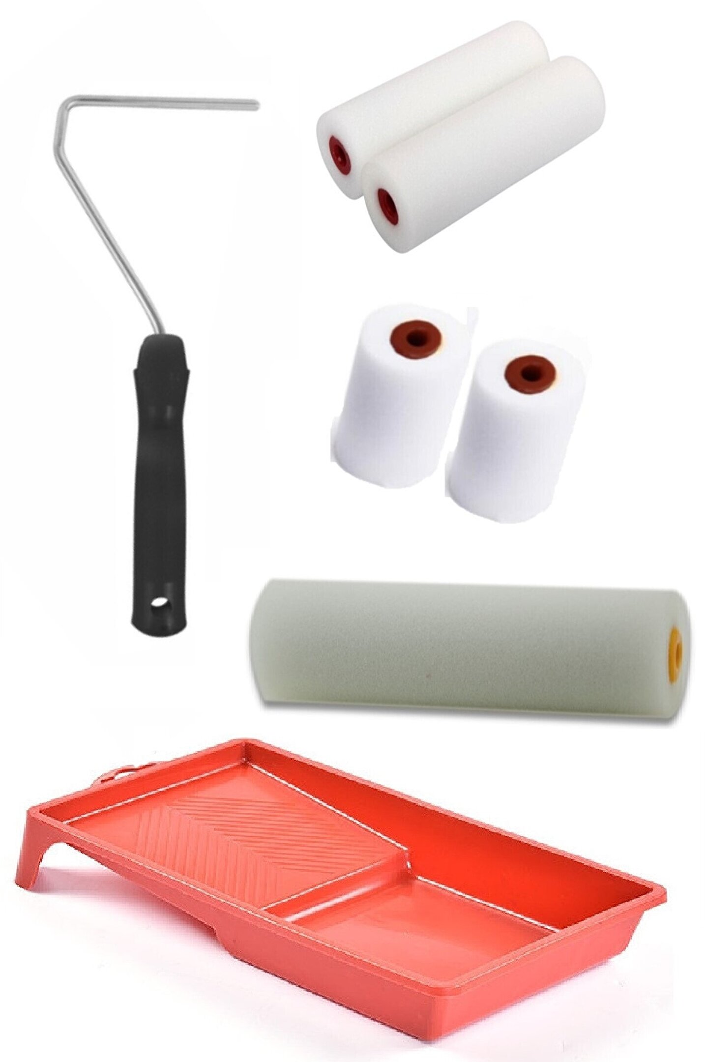 Setimizde 15 cm sünger rulo 1 adet 10 cm sünger rulo 2 adet 5 cm sünger rulo 2 adet Rulolara uyumlu sap 1 adet Boya kabı 1 adet Bulunmakta rulolarımız kabarcıksız ve pürüzsüz bir boyama için yüksek yoğunlukta süngerden imal edilmiştir. ; Vernik, yağlı boya, akrilik boya, su bazlı boya uygulamalarında kullanılır. ; Kesinlikle iz bırakmaz;