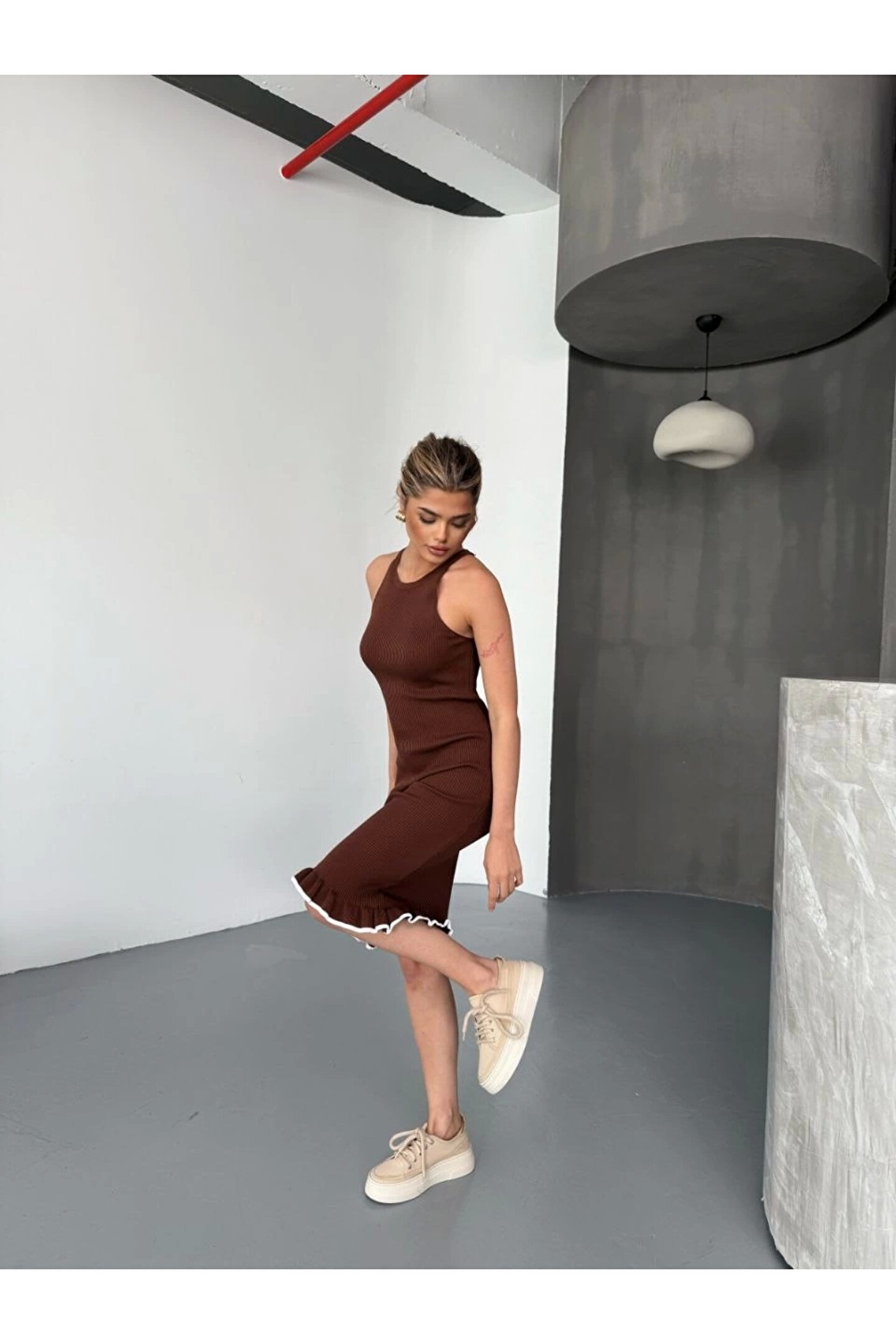 - Günlük kullanım için ideal, rahat ve şık bir tasarıma sahip.; - Orta kalınlıkta triko materyali ile mevsim geçişlerinde konfor sağlar.; - Kolsuz tasarımı sayesinde yaz aylarında serinlik hissi verir.; - Baskısız yüzeyiyle sade ve zamansız bir görünüm sunar.; - Cepsiz yapısı ile minimalist ve düzgün bir siluet oluşturur.; - Kutu içermeyen ambalajı ile doğrudan kullanım kolaylığı sağlar.; - Cool & Comfort persona'ya uygun, rahat ve stil sahibi bir görünüm sunar.; - Halter yaka detayı ile modern ve feminen bir hava katar.; - Astarsız yapısıyla hafiflik ve konforu artırırken, kemersiz tasarımıyla rahat hareket etme olanağı tanır.; - Triko materyali sayesinde yumuşak dokunuş ve dayanıklılık sunar.; - Tüm sezonlar için uygun olan bu elbise, her mevsimde şıklığınızdan ödün vermezsiniz.; - Kapsız tasarımı ile hafif ve serin bir kullanım deneyimi yaşatır.; - Düz deseniyle kolayca kombinlenebilir ve zarif bir görünüm kazandırır.;