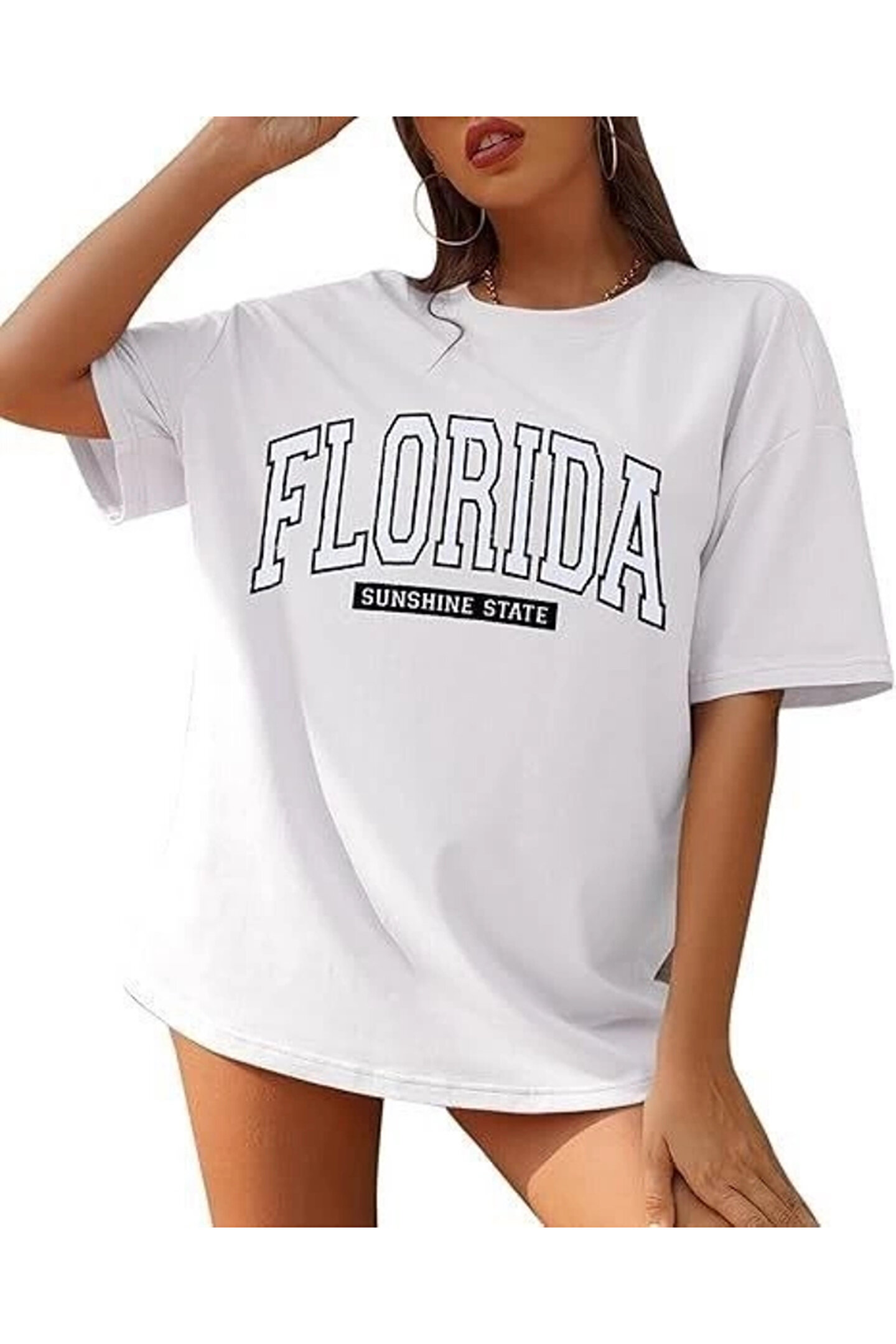 Flexium Kadın Bisiklet Yaka Baskılı Beyaz T-shirt