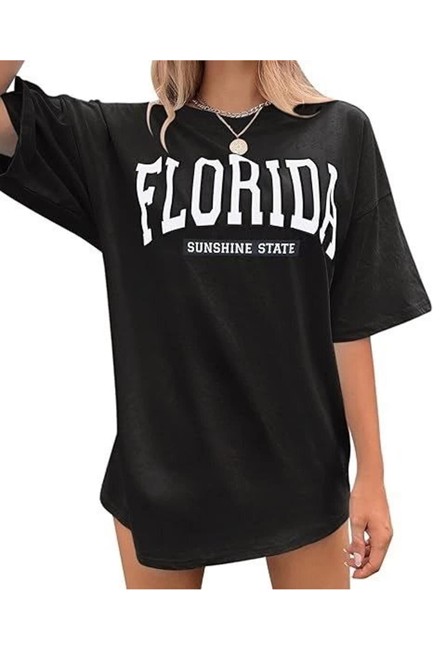 Flexium Kadın Bisiklet Yaka Baskılı Siyah T-shirt