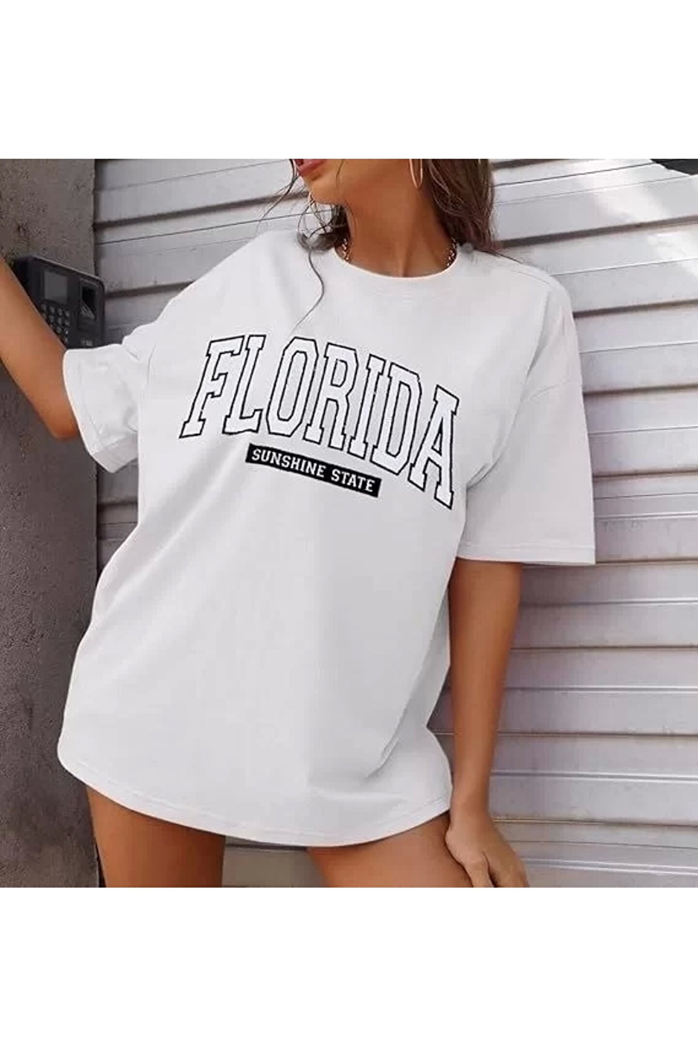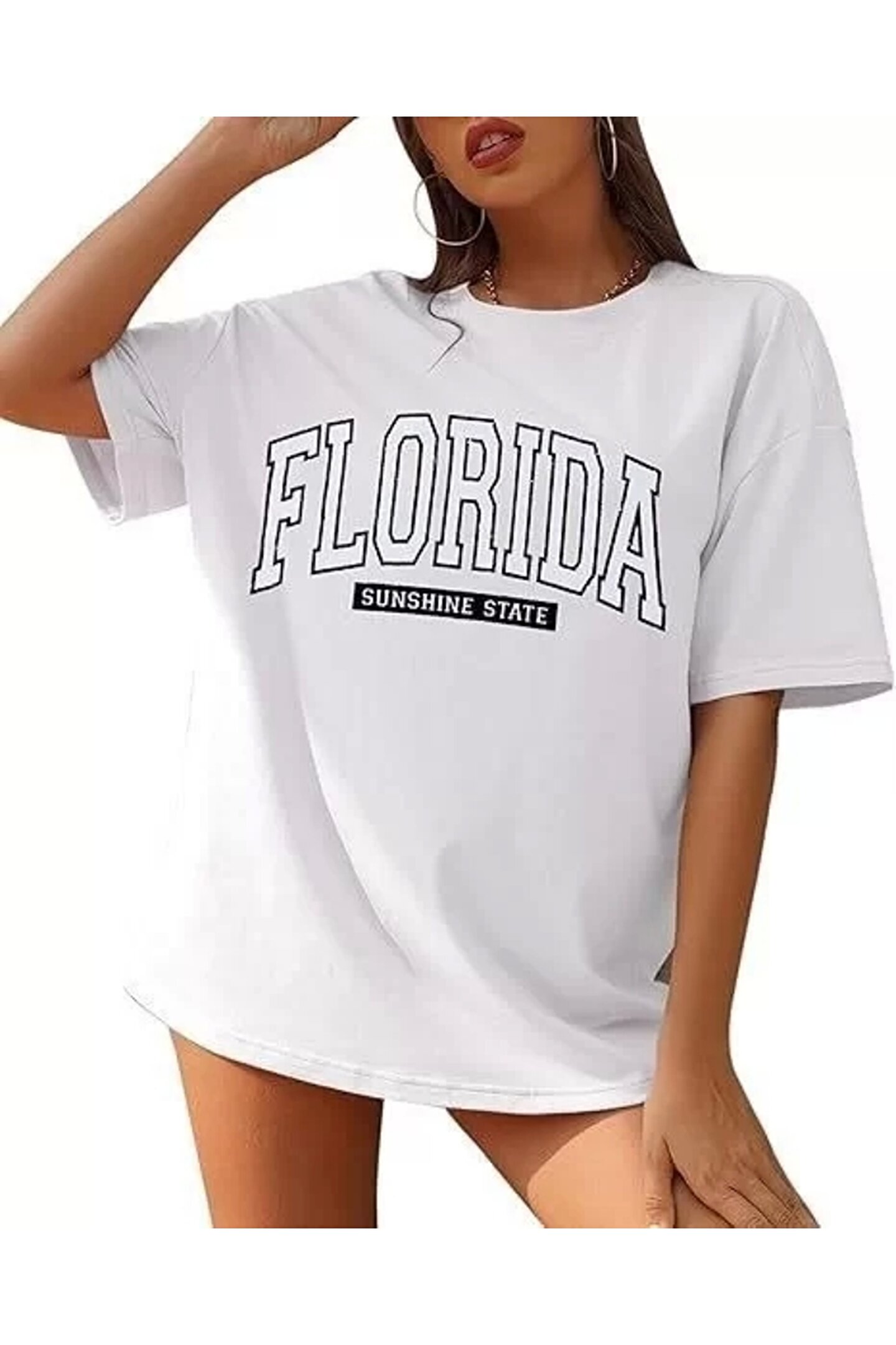 Flexium Kadın Bisiklet Yaka Baskılı T-shirt - Beyaz