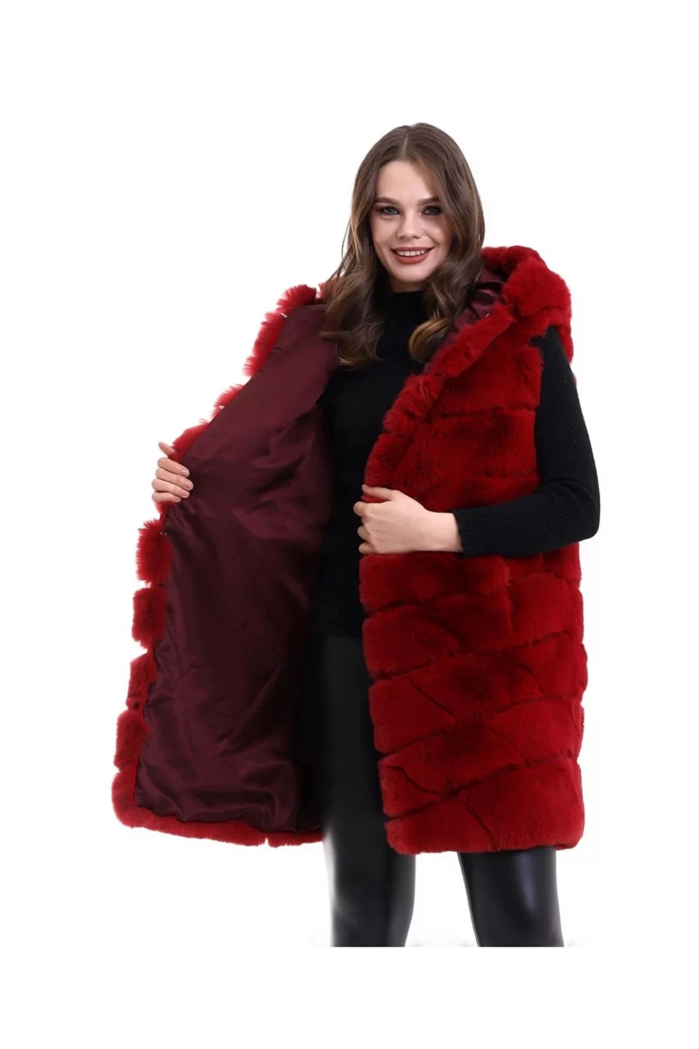 Flexium Kadın Reks Kapüşonlu Yelek - Kırmızı