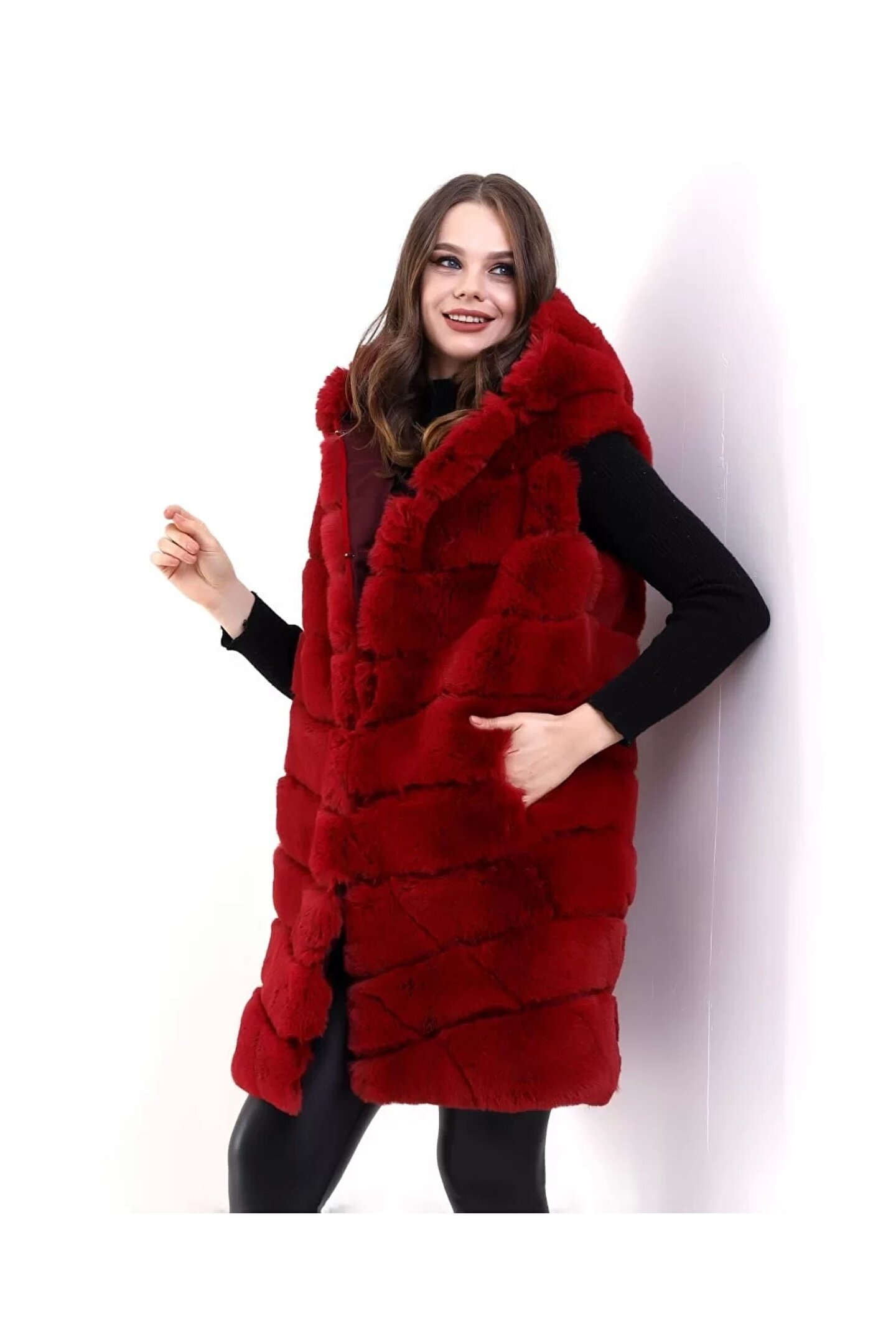 Reks Kapüşonlu Yelek - Kırmızı