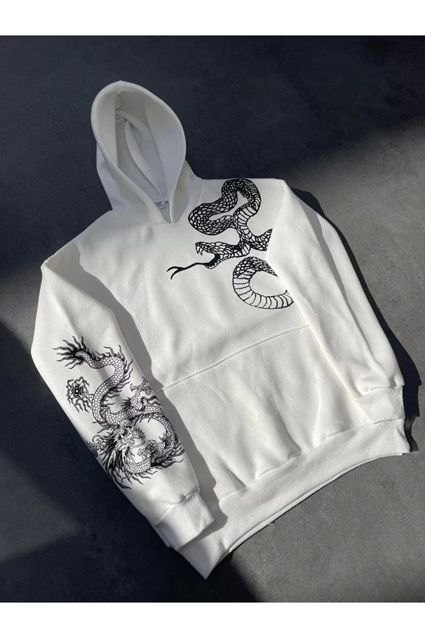 Flexium Uzun Kol Kapüşonlu Baskılı SweatShirt - Beyaz