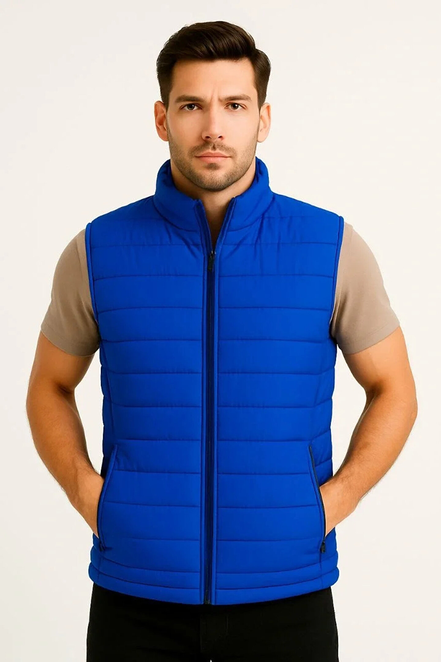 fourblack Erkek Şişme Fermuarlı Yelek Su itici Kapitone Astarlı Kumaş Cepli Hafif Kışlık Spor Rahat Ka