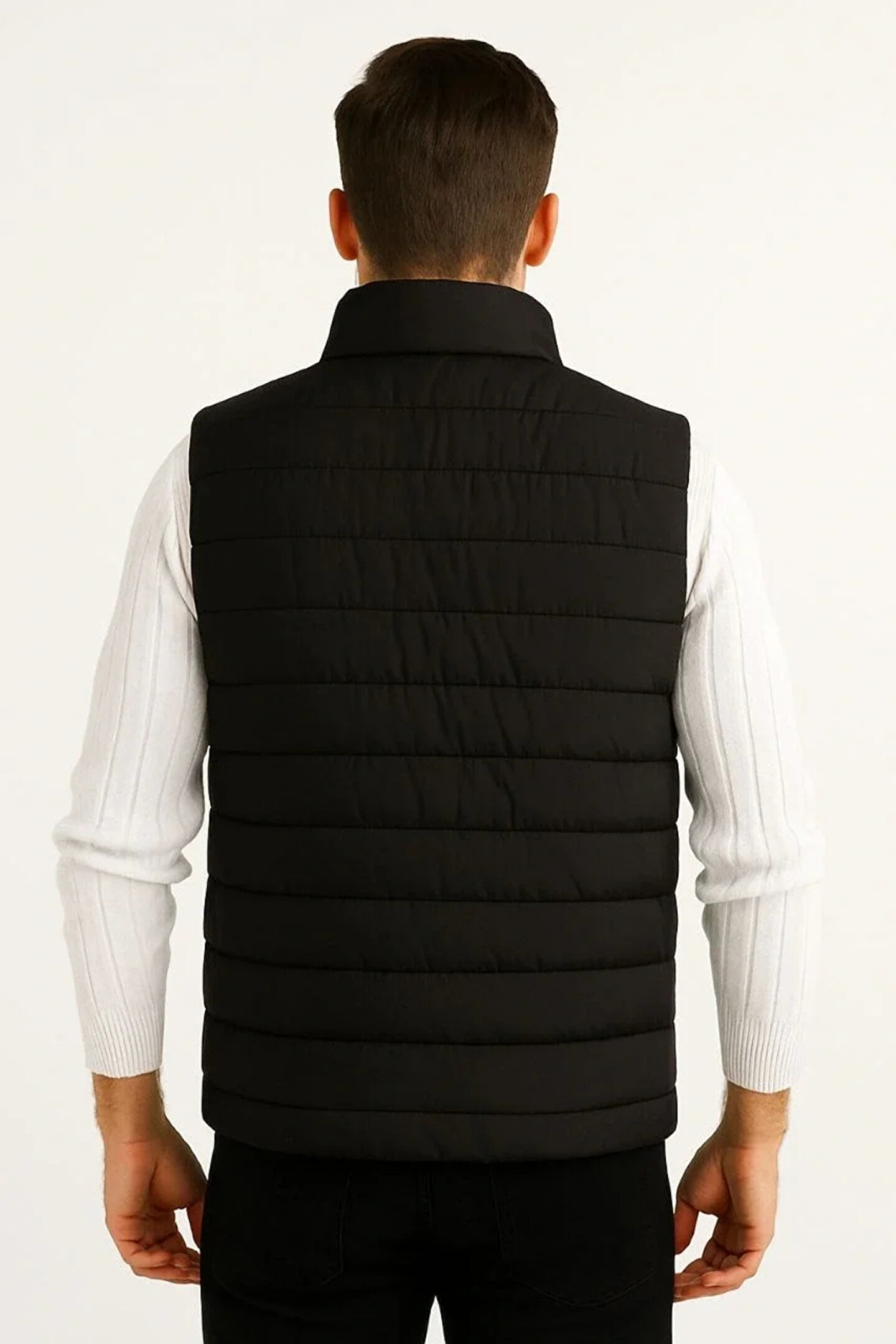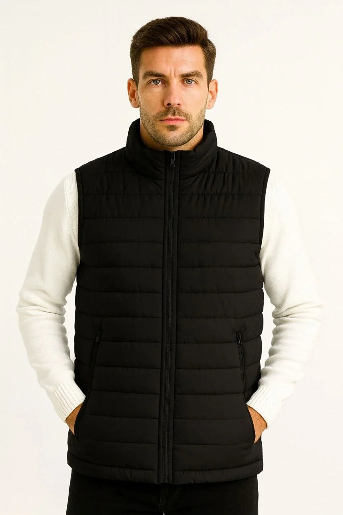 fourblack Erkek Şişme Fermuarlı Yelek Su itici Kapitone Astarlı Kumaş Cepli Hafif Kışlık Spor Rahat Ka