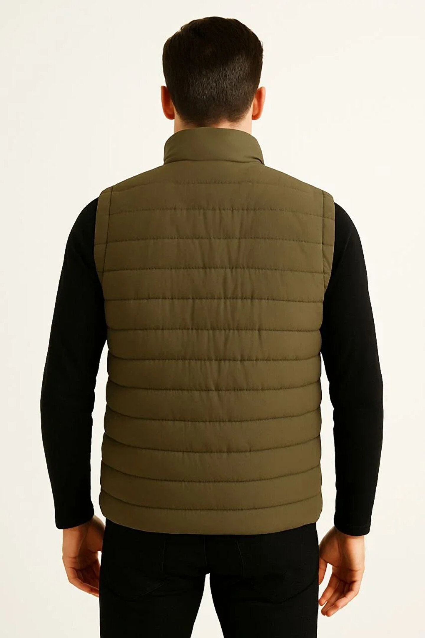 fourblack Erkek Şişme Fermuarlı Yelek Su itici Kapitone Astarlı Kumaş Cepli Hafif Kışlık Spor Rahat Kalıp - Ha