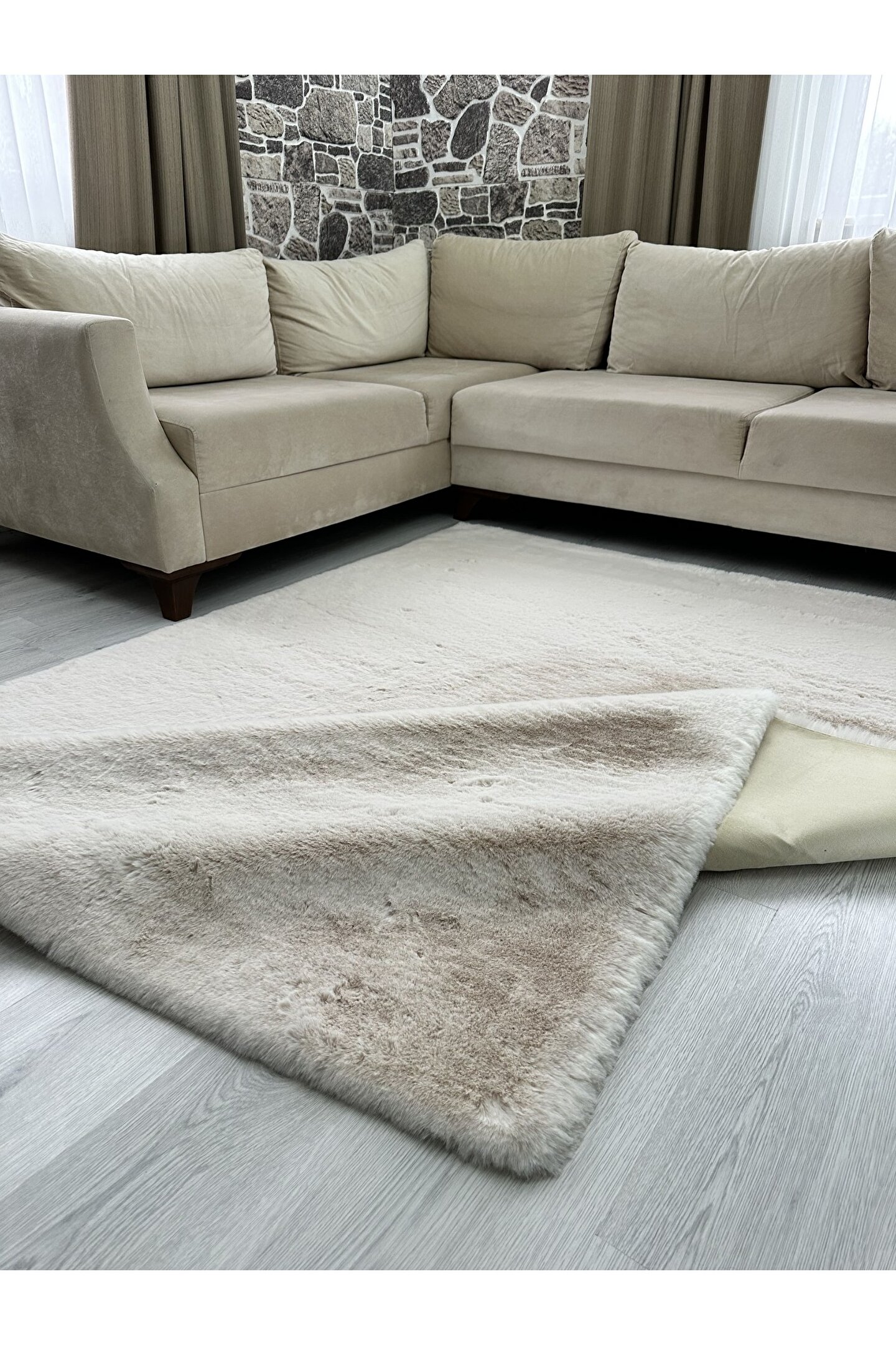 Freya Home Modern Tavşan Tüyü Yumuşacık Tüy Dökmez Peluş Halı Taş