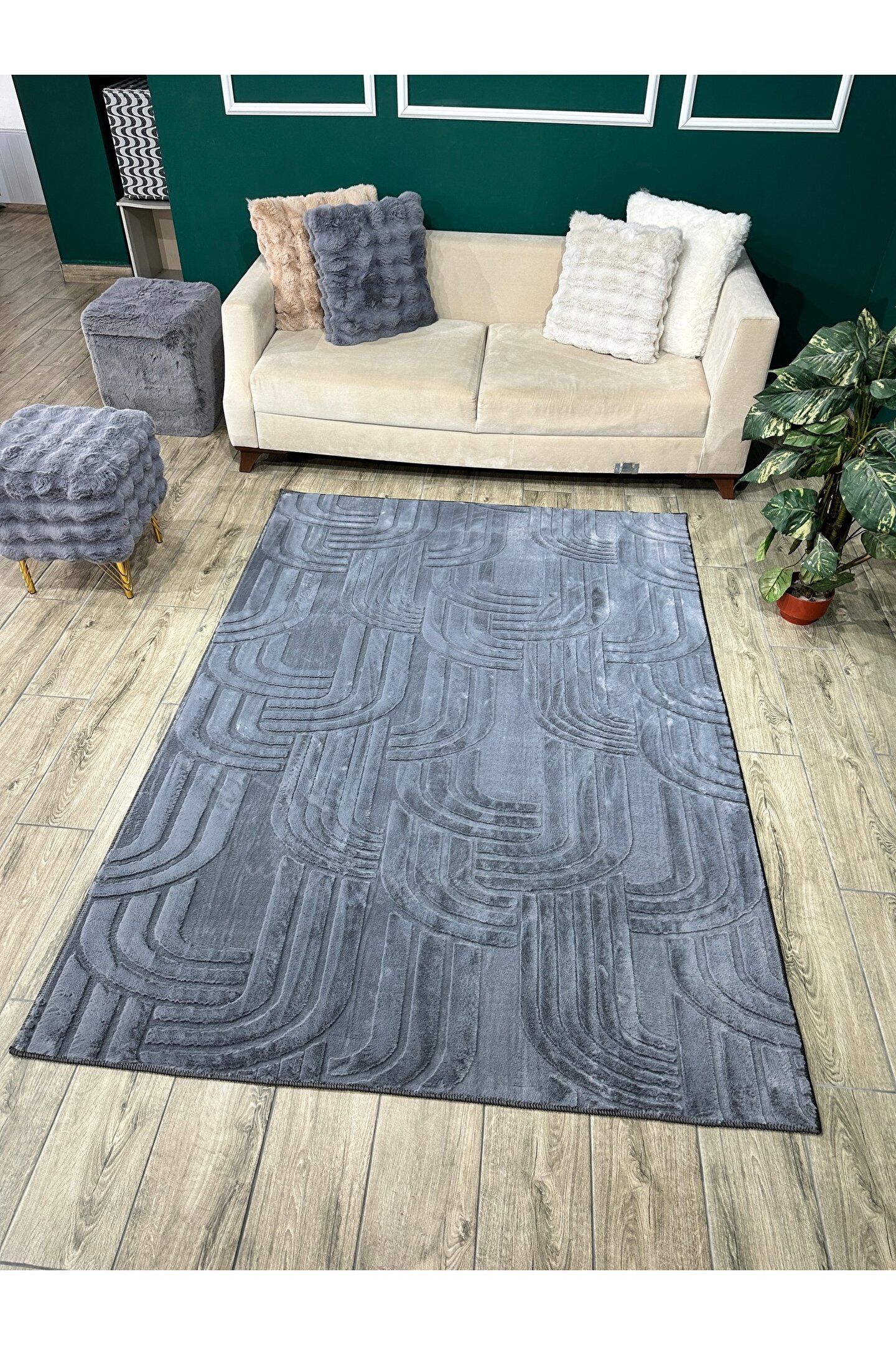 Freya Home Modern Yumuşak Dokulu Tüy Dökmez Yıkanabilir Tavşan Tüyü Peluş Halı Antrasit