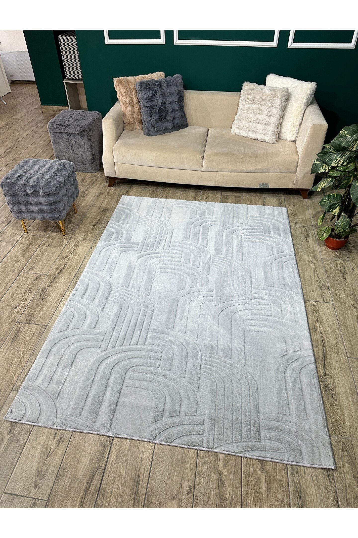 Freya Home Modern Yumuşak Dokulu Tüy Dökmez Yıkanabilir Tavşan Tüyü Peluş Halı Gri